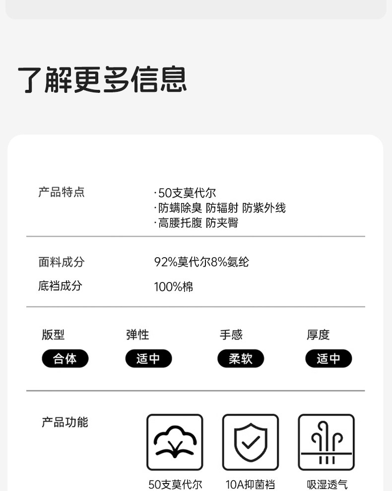 | 大身材質成分 | 莫代爾纖維(莫代爾)92% 聚氨酯彈性纖維(氨綸)8% |