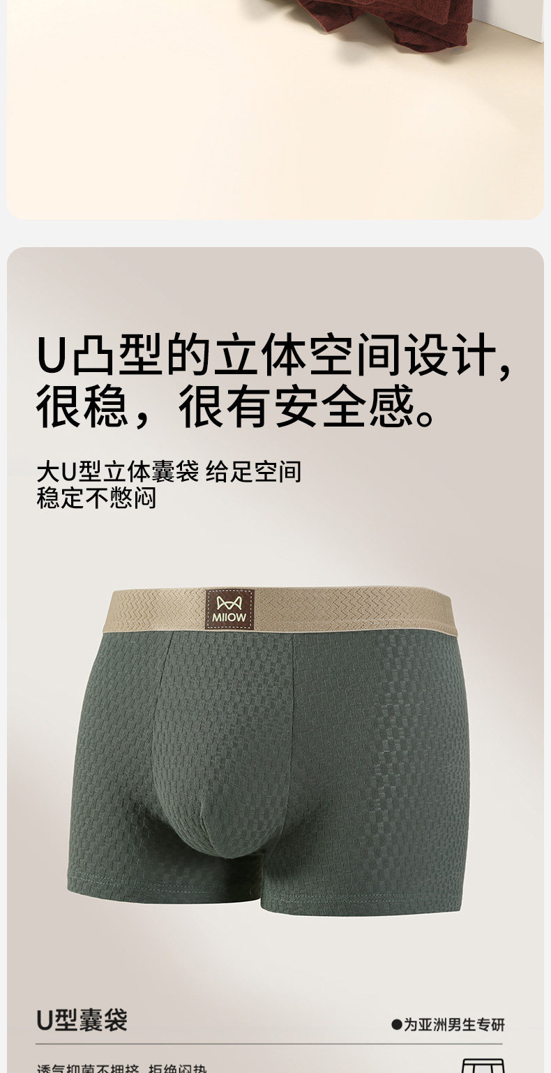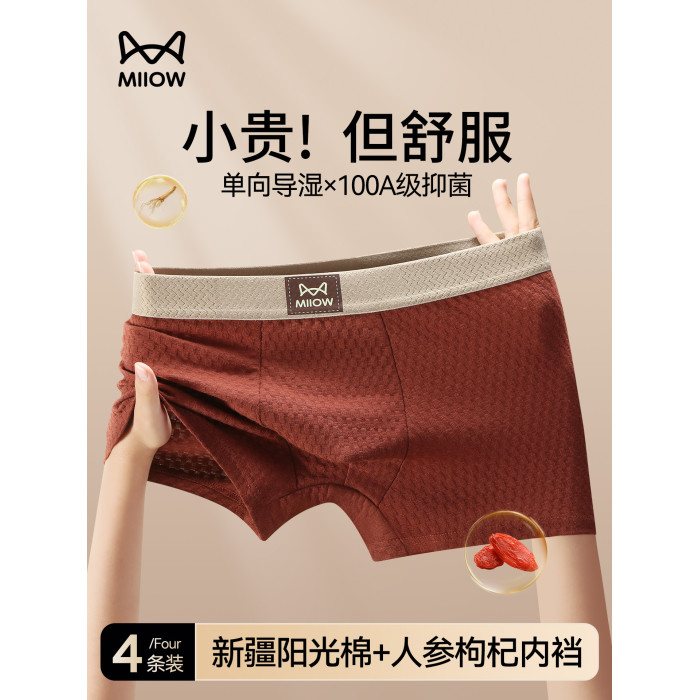 貓人男士內褲純棉男生2026新款平角褲男式大碼透氣四角短褲頭男款