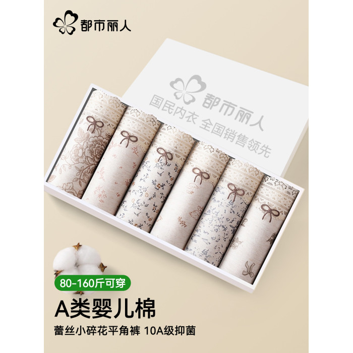 都市麗人平角內褲女純棉抑菌包臀中腰無痕2026新款蕾絲邊四角短褲