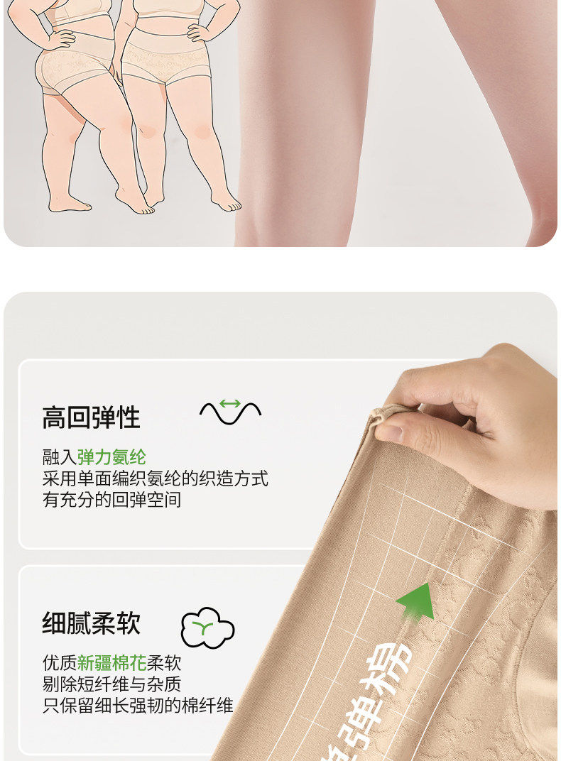雅鹿純棉內褲女士高腰收腹2026新款抗菌全棉襠不夾臀女生短褲大碼