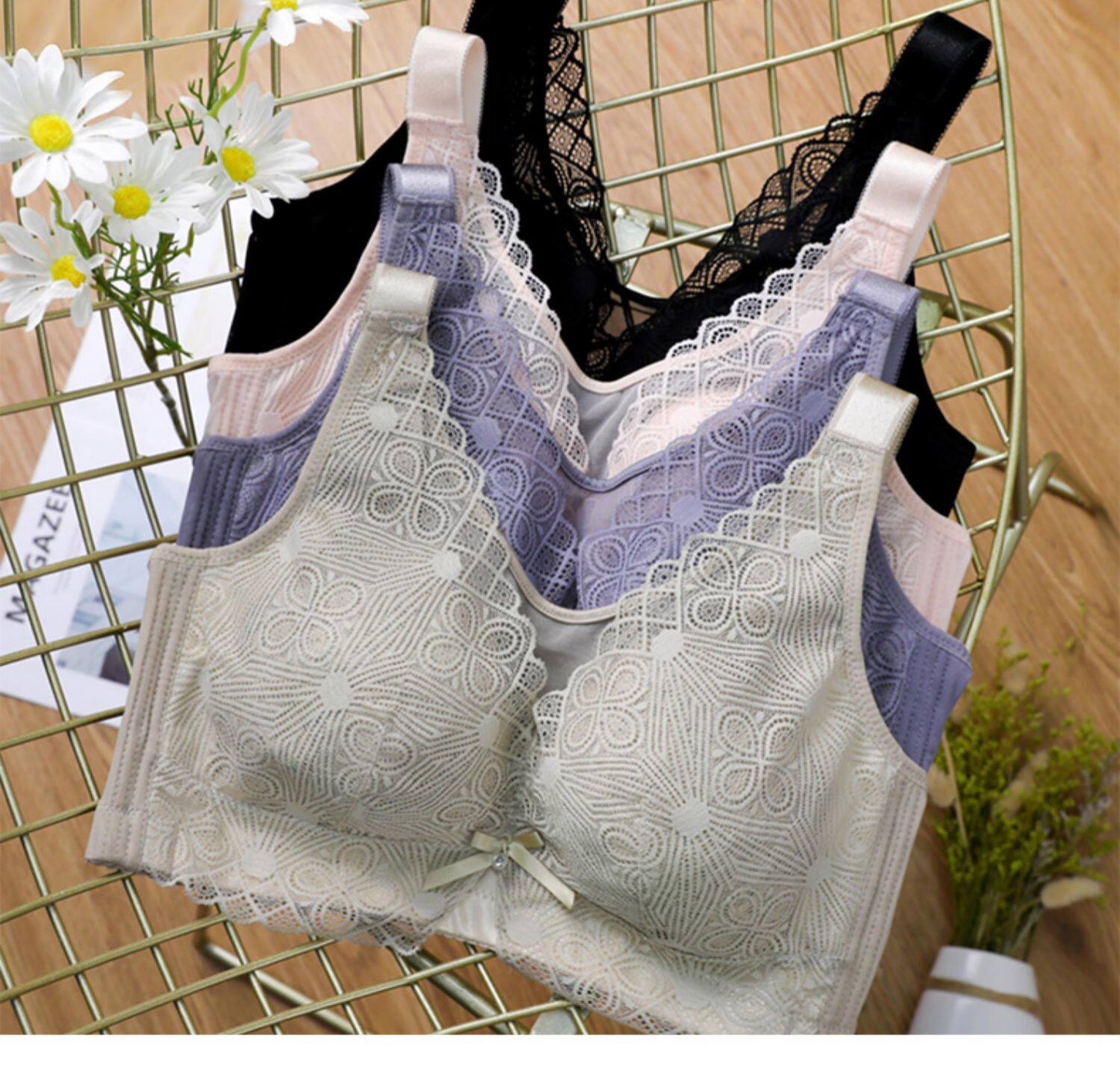 大胸顯小文胸大碼內衣女胖mm無鋼圈薄款收副乳全罩杯防走光抹胸罩