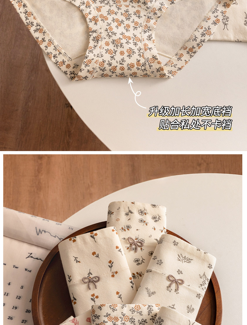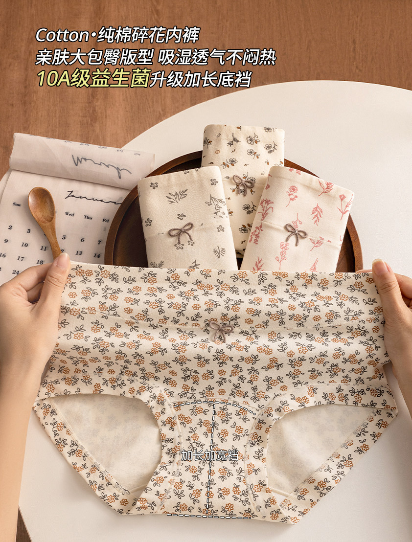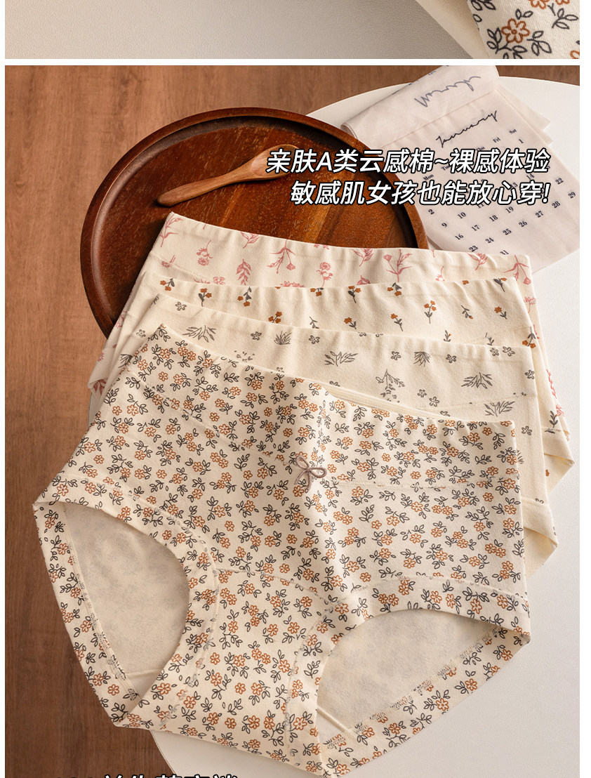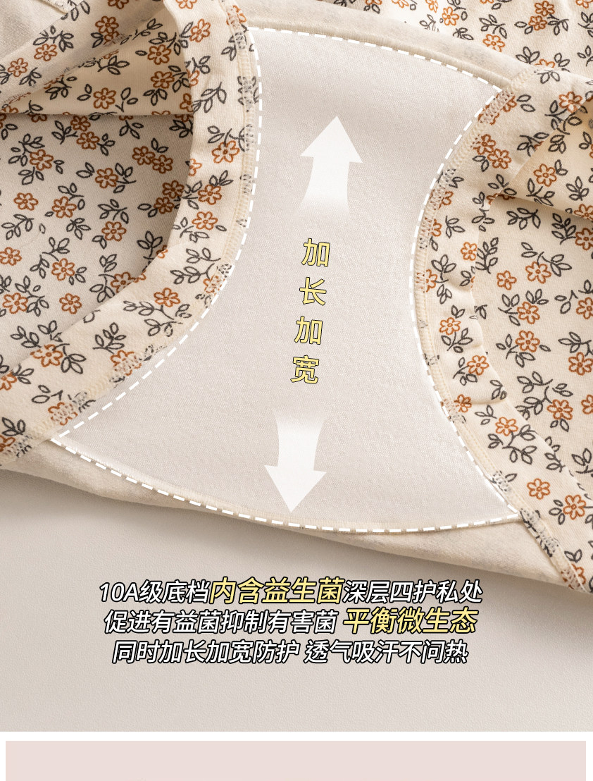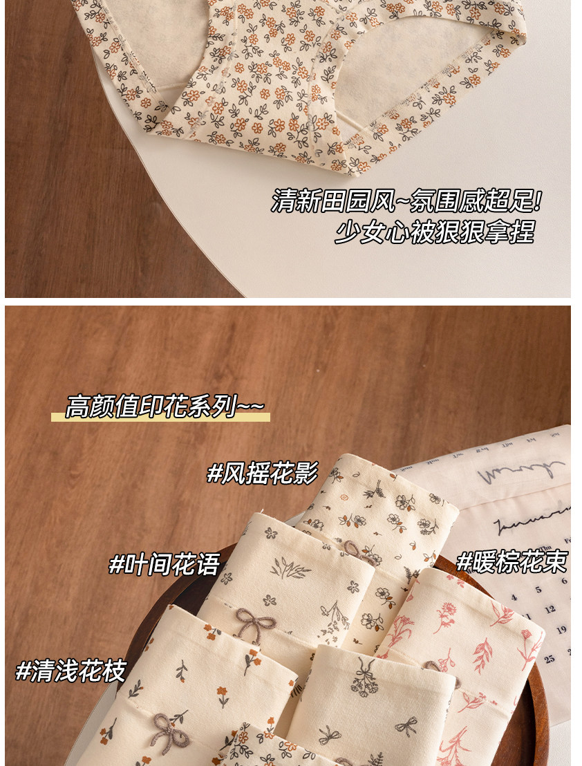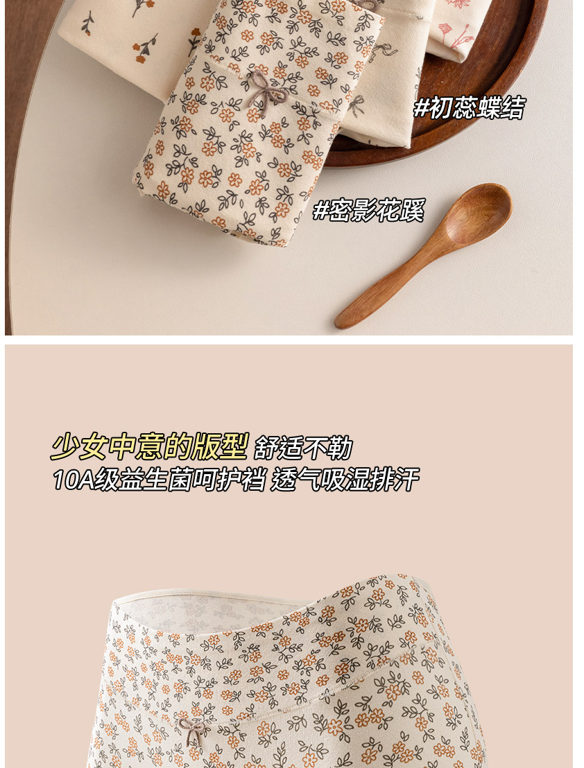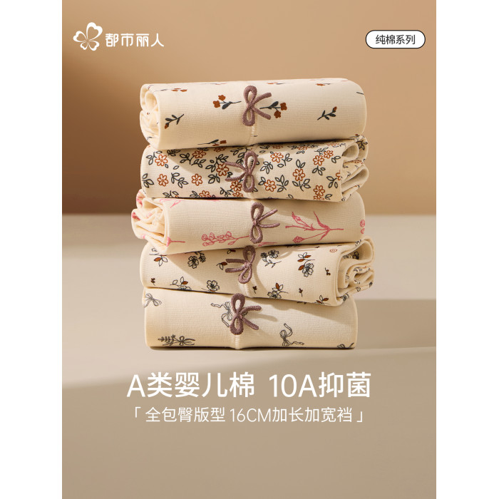 都市麗人內褲女士純棉全棉抗菌加長襠中高腰無痕碎花女生三角短褲