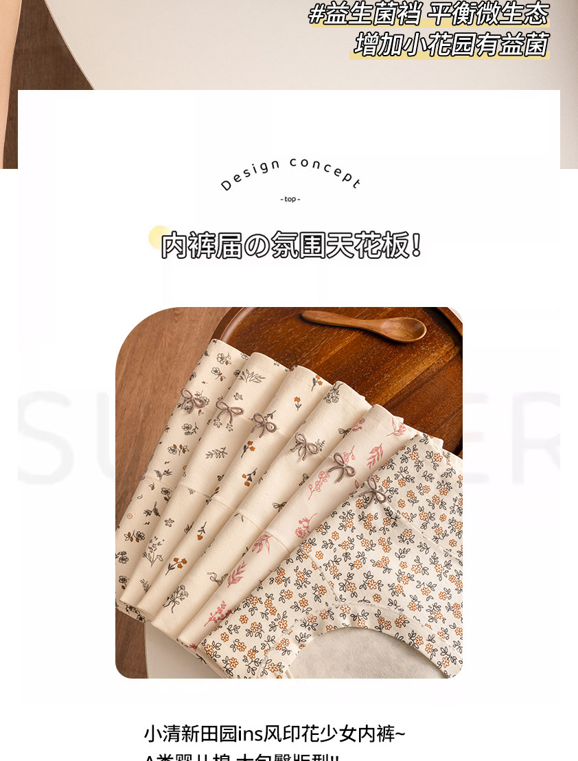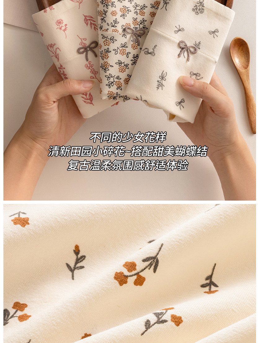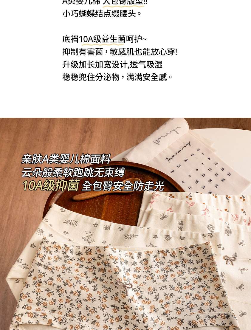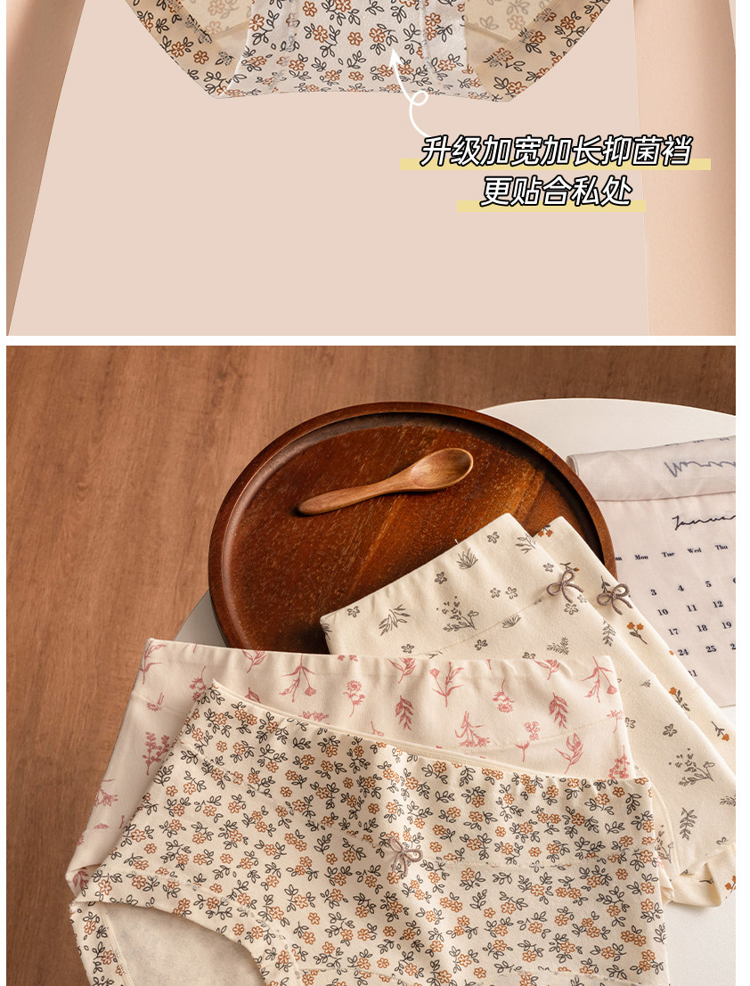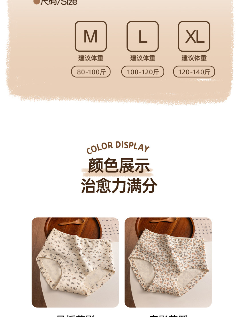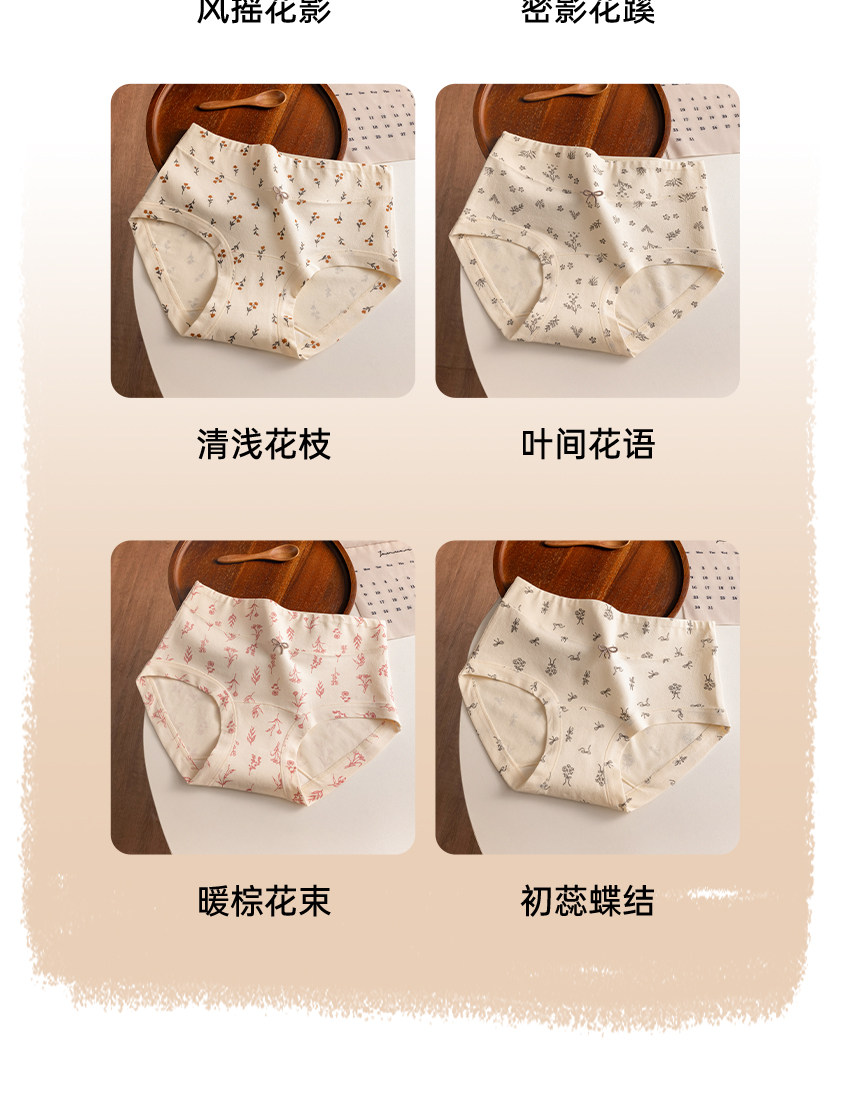 都市麗人內褲女士純棉全棉抗菌加長襠中高腰無痕碎花女生三角短褲