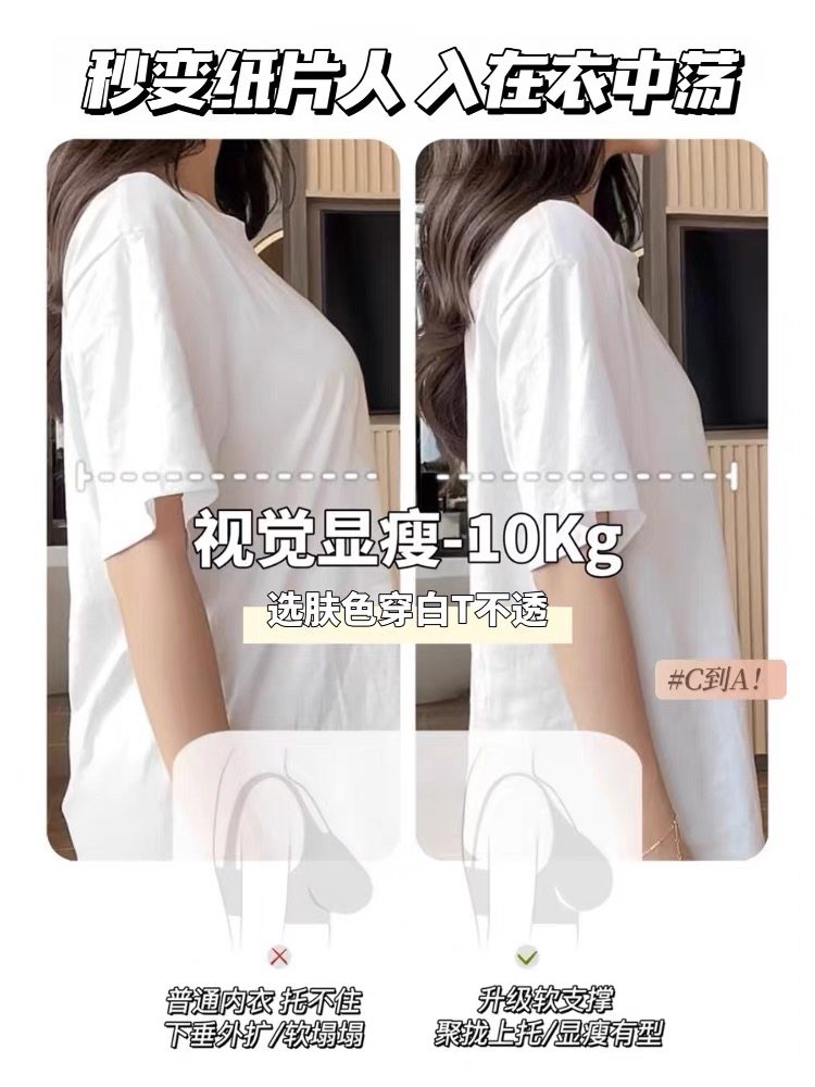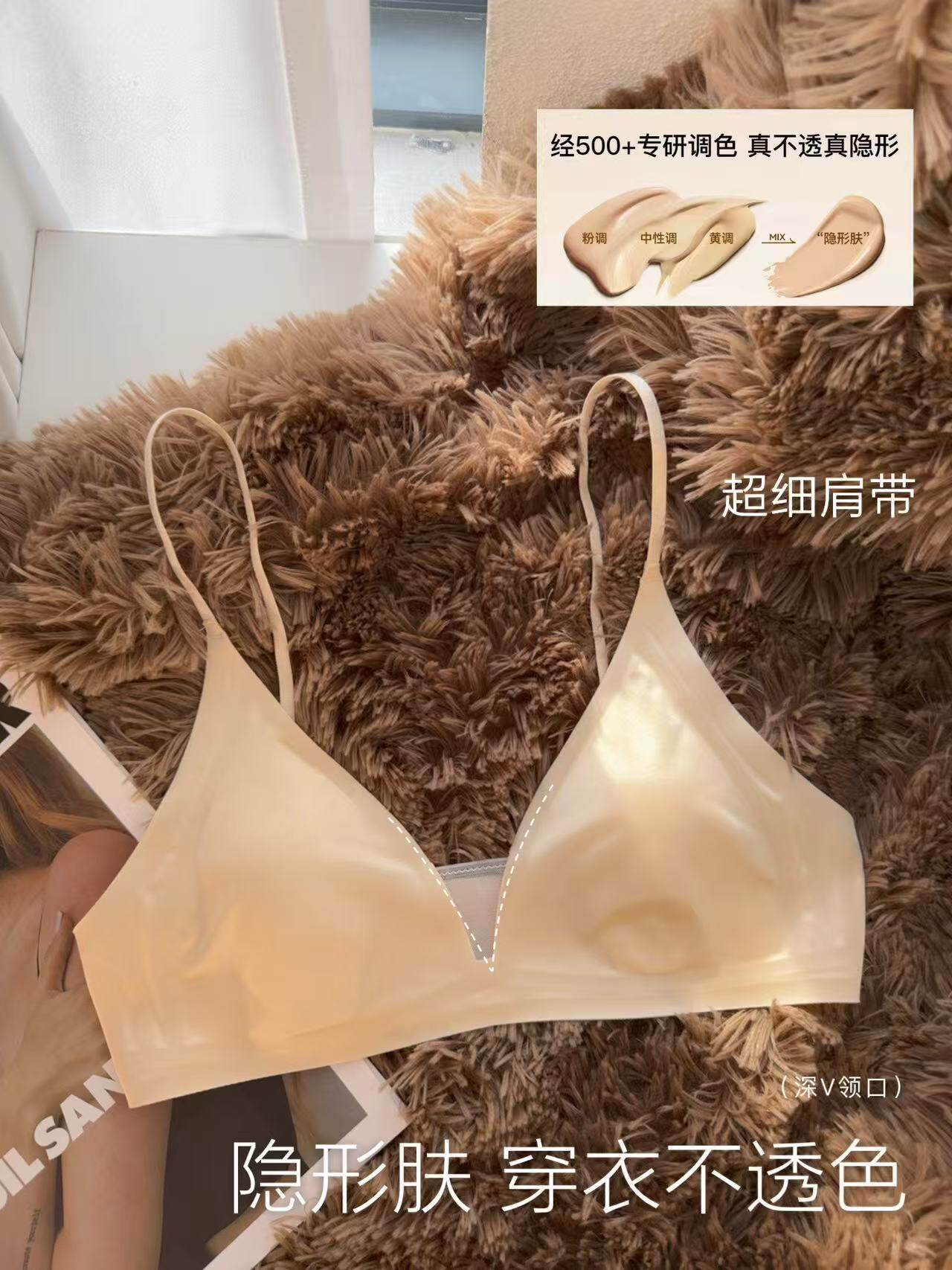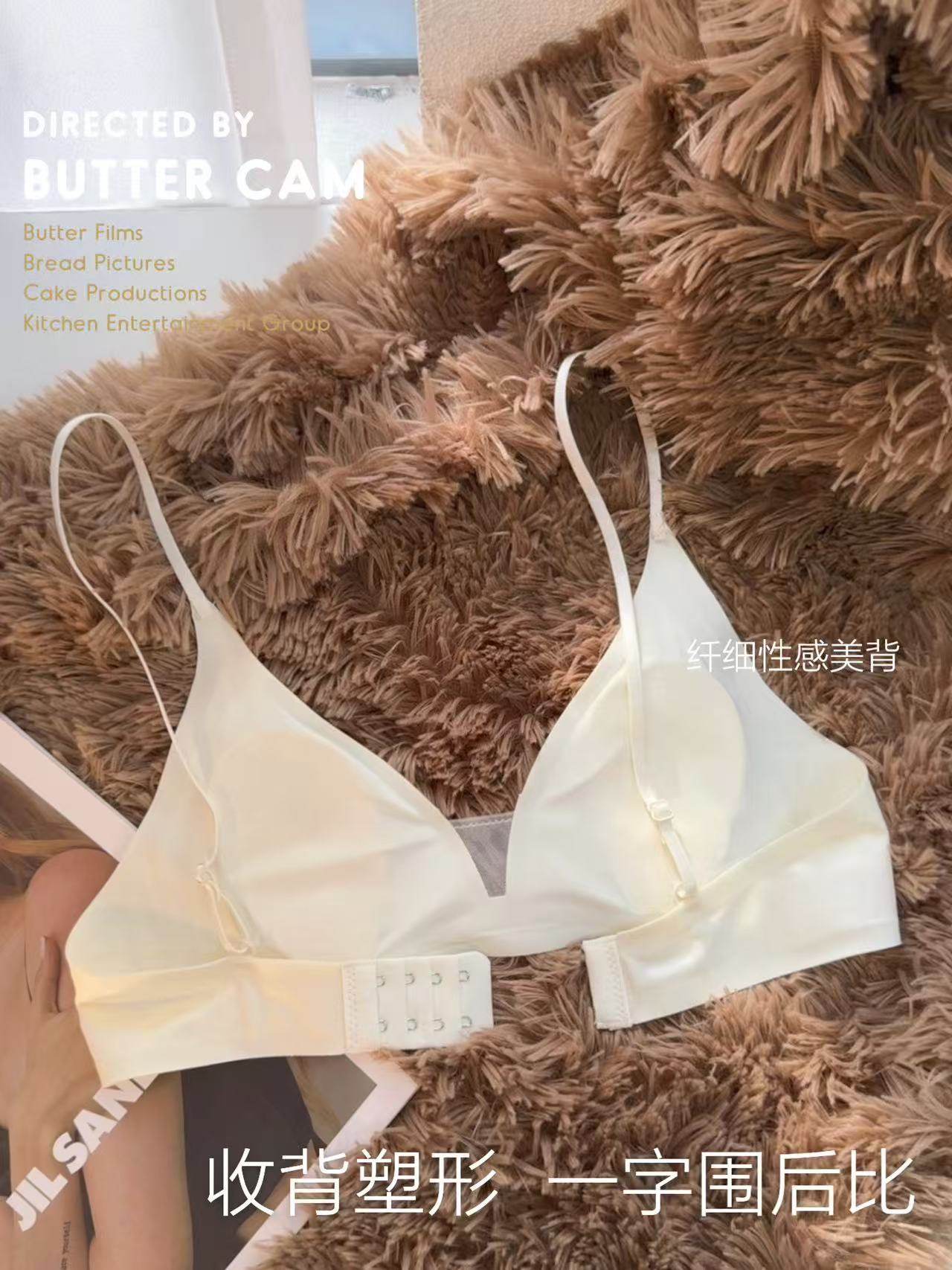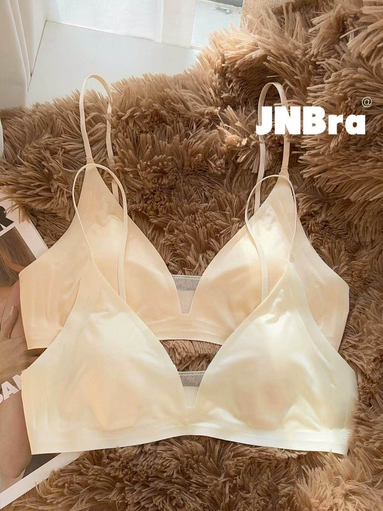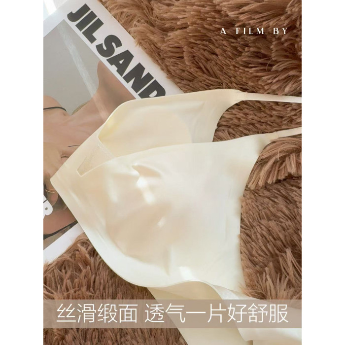 壓扁可頌 無痕內衣女薄款顯胸小法式細肩帶無鋼圈透氣學生文胸罩