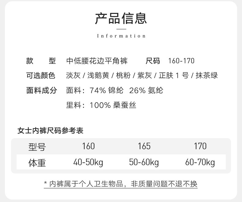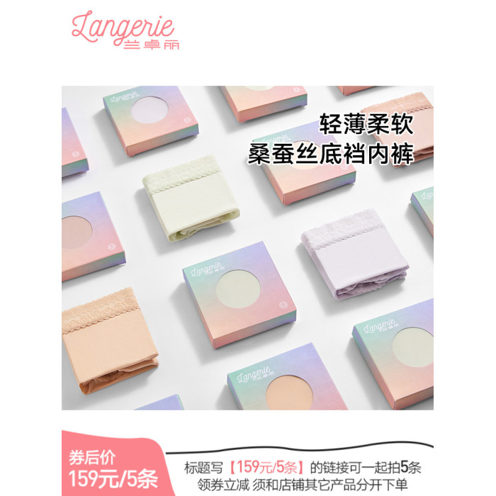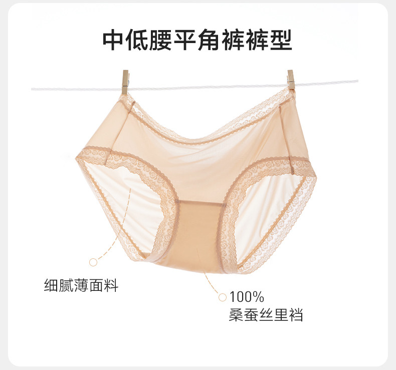【領券159元/5條】蘭卓麗商場同款平角內褲女中低腰純桑蠶絲底襠