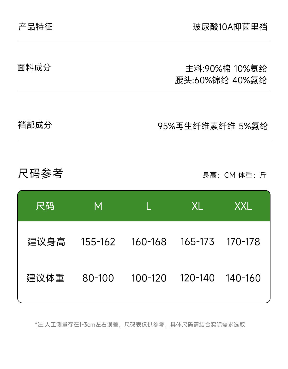 | 襠部材質成分 | 再生纖維素纖維96% 聚氨酯彈性纖維(氨綸)4% |