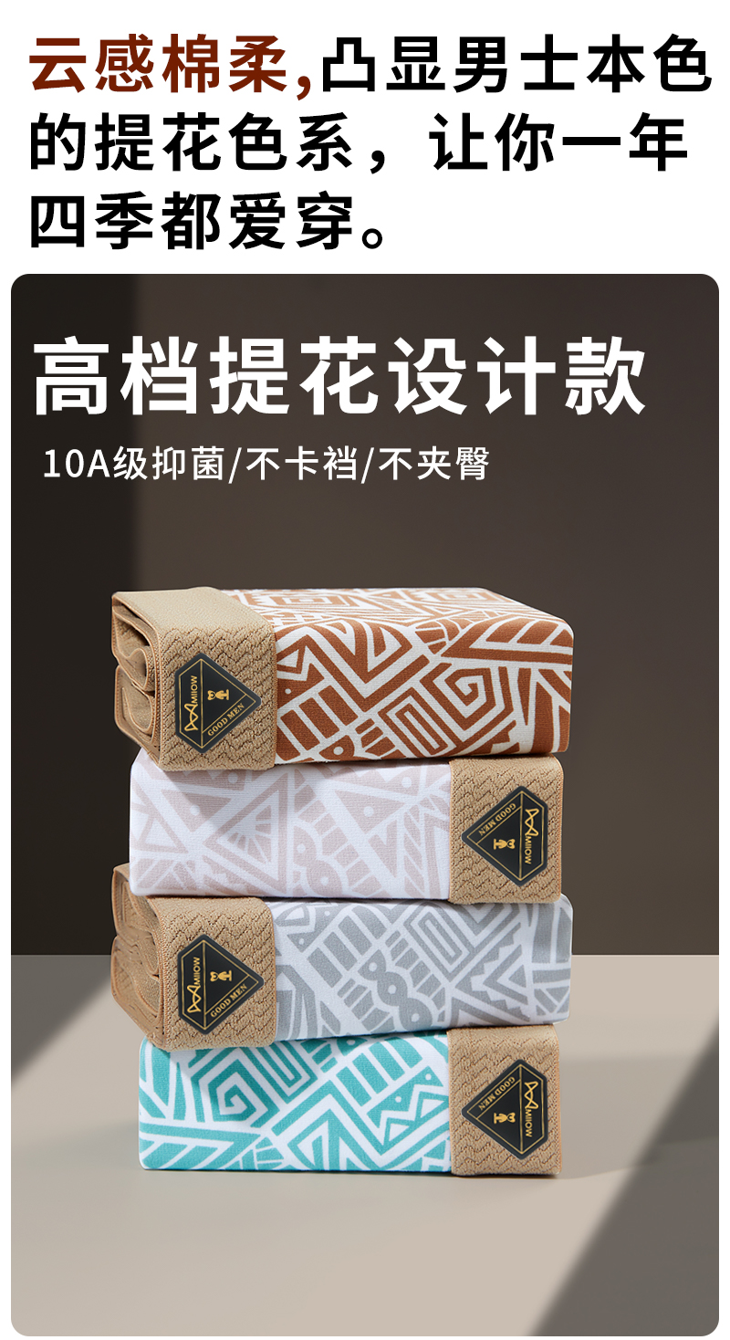 貓人男士內褲純棉男生四角短褲2026新款透氣抑菌平角褲頭男款褲衩