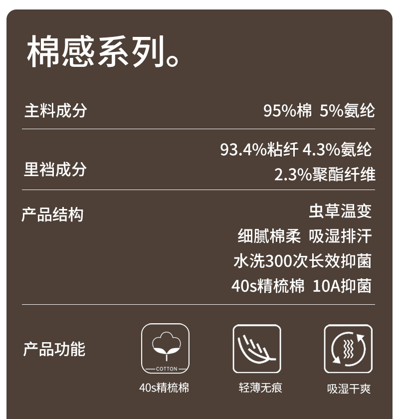 | 襠部材質成分 | 粘膠纖維(粘纖)93.4% 聚氨酯彈性纖維(氨綸)4.3% 聚酯纖維2.3% |
