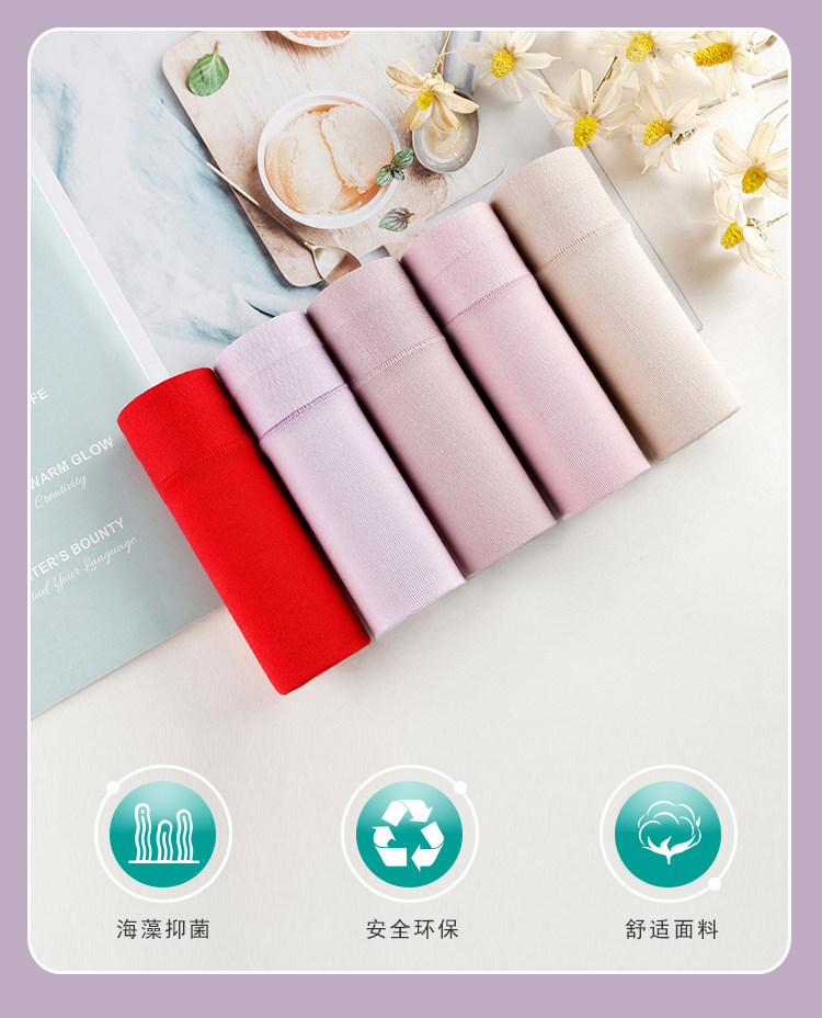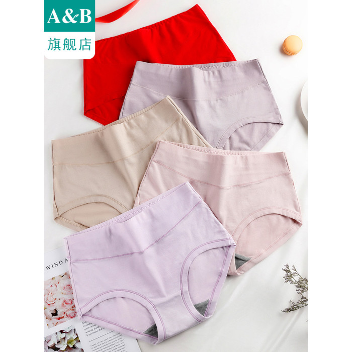 ab內衣【2條裝】棉純色平腳內褲海藻抗菌中高腰女短褲旗艦店L626