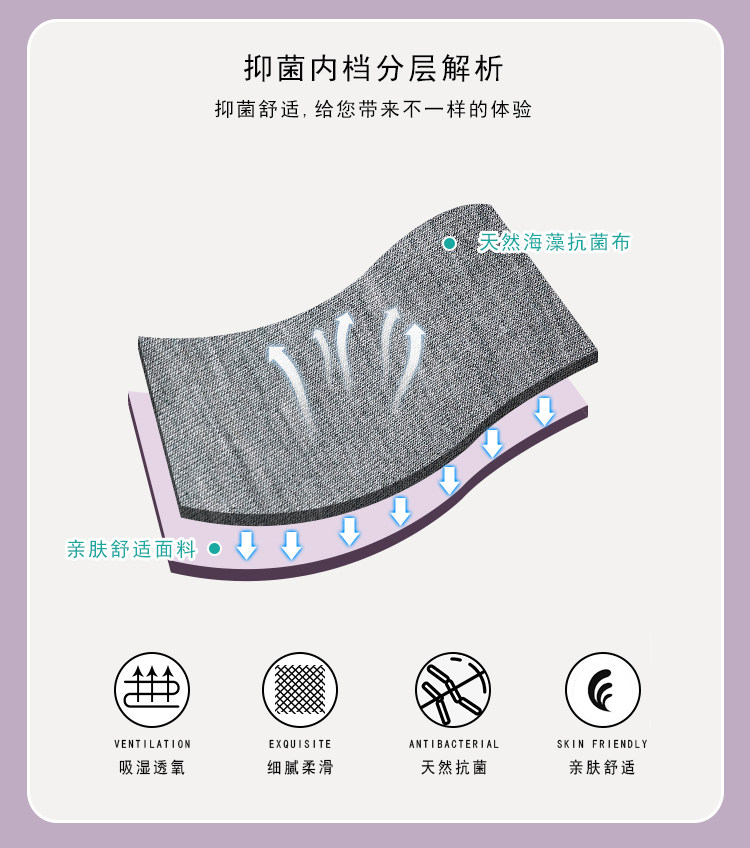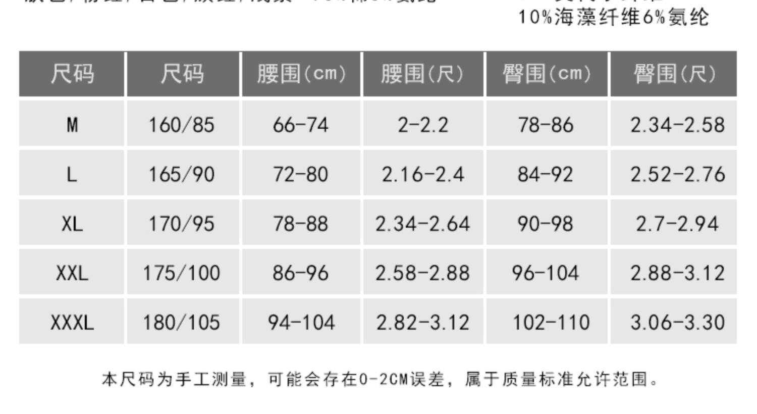 | 襠部材質成分 | 莫代爾纖維(莫代爾)84% 海藻纖維10% 聚氨酯彈性纖維(氨綸)6% |