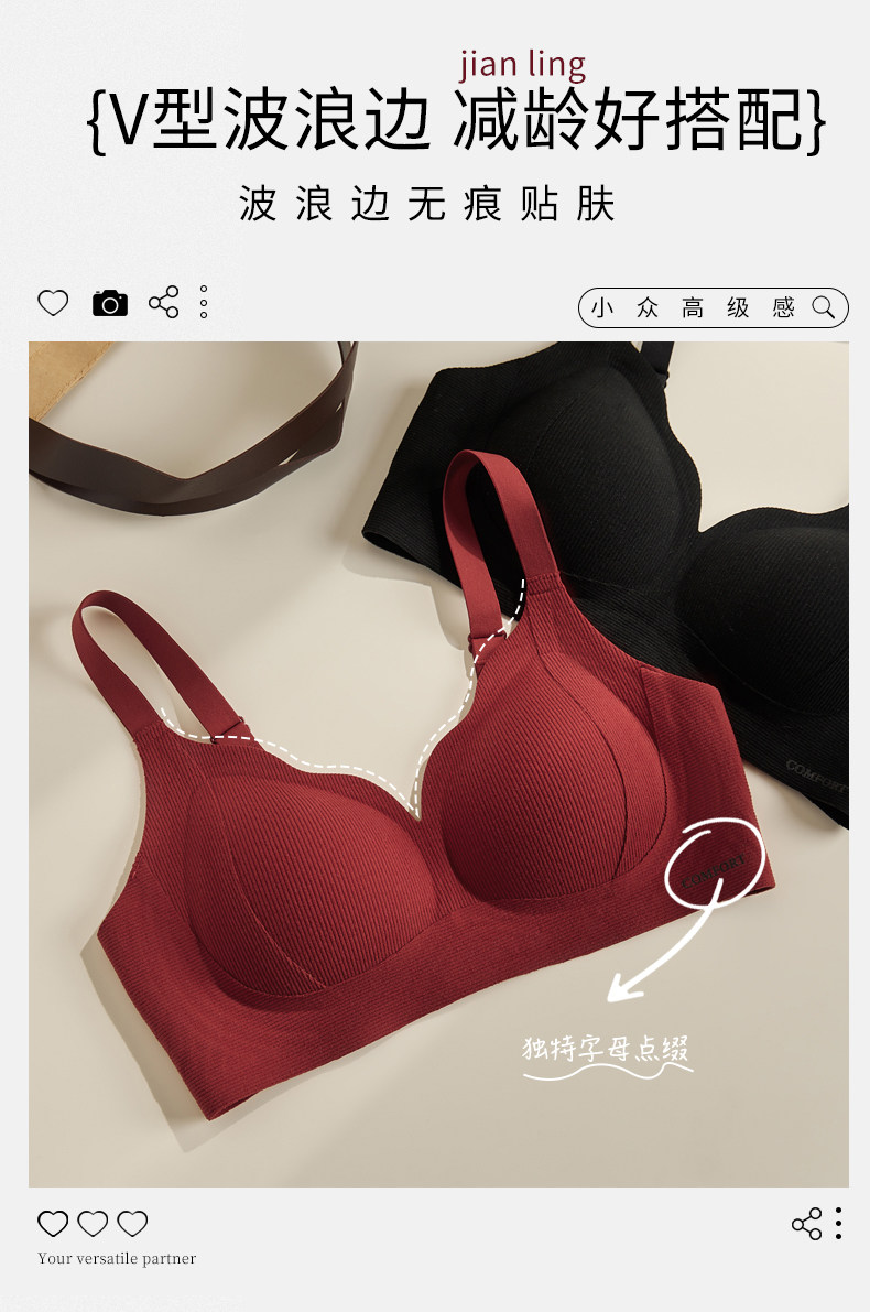 無痕內衣女大胸顯小收副乳聚攏顯大防下垂無鋼圈2025本命年文胸罩