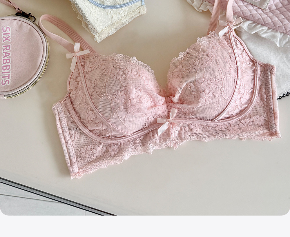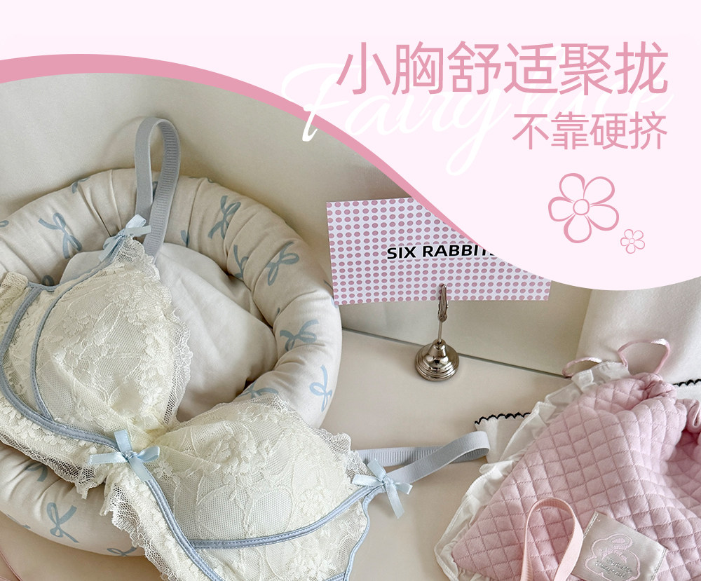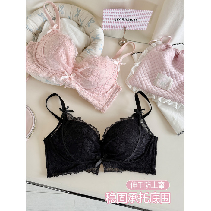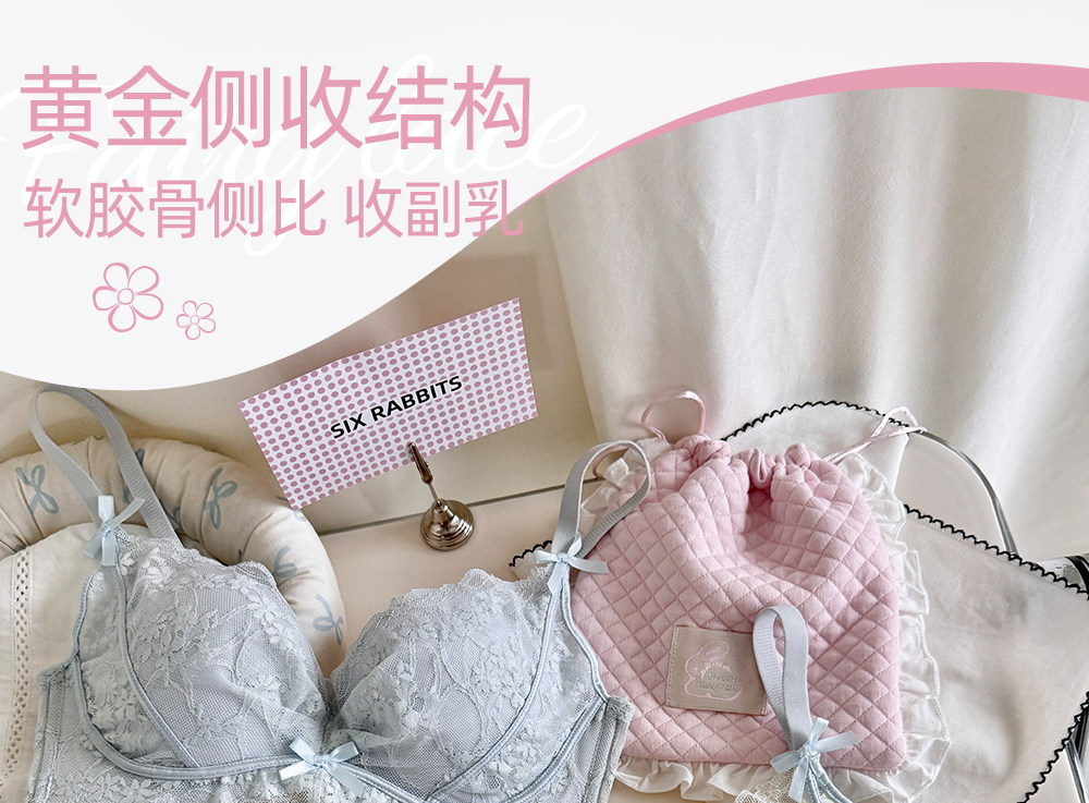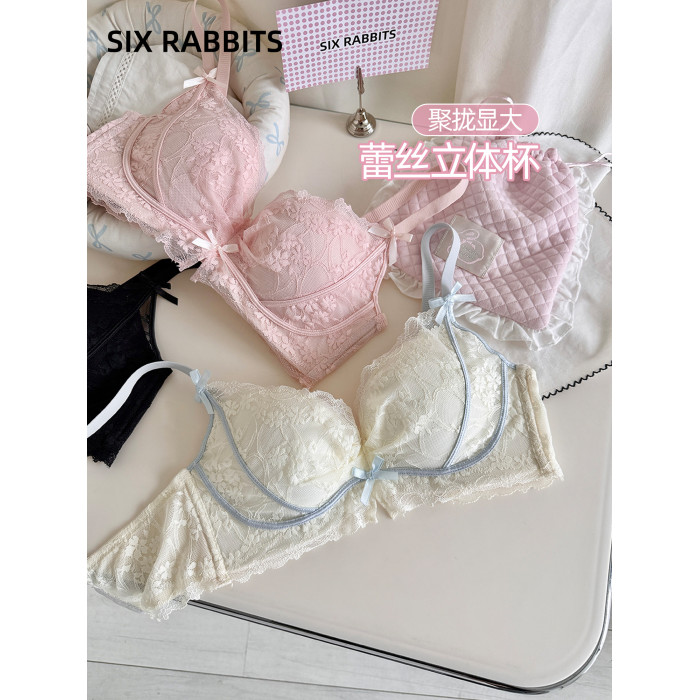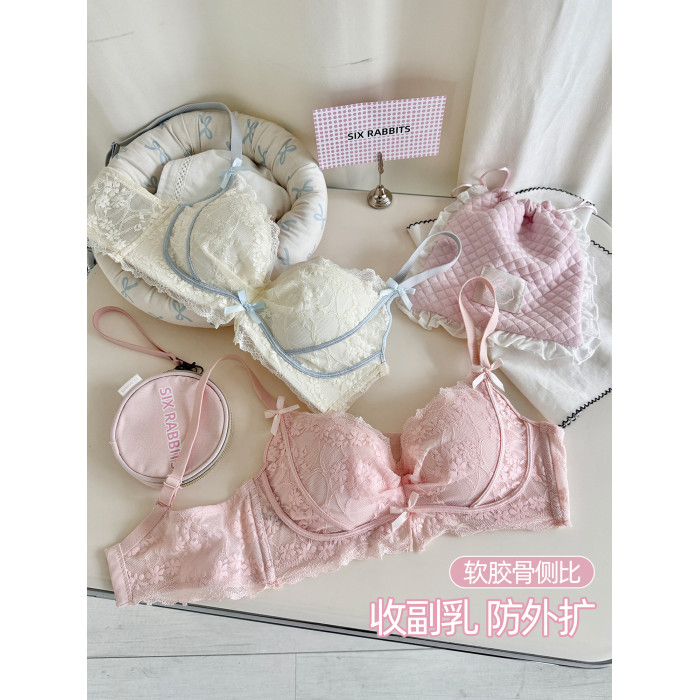 六隻兔子無鋼圈內衣女小胸聚攏顯大文胸側收副乳防下垂蕾絲胸罩