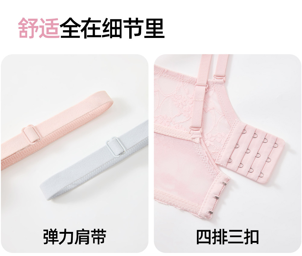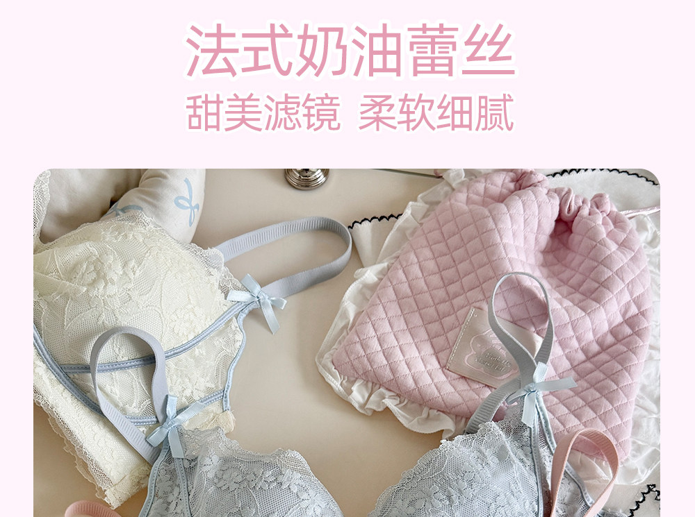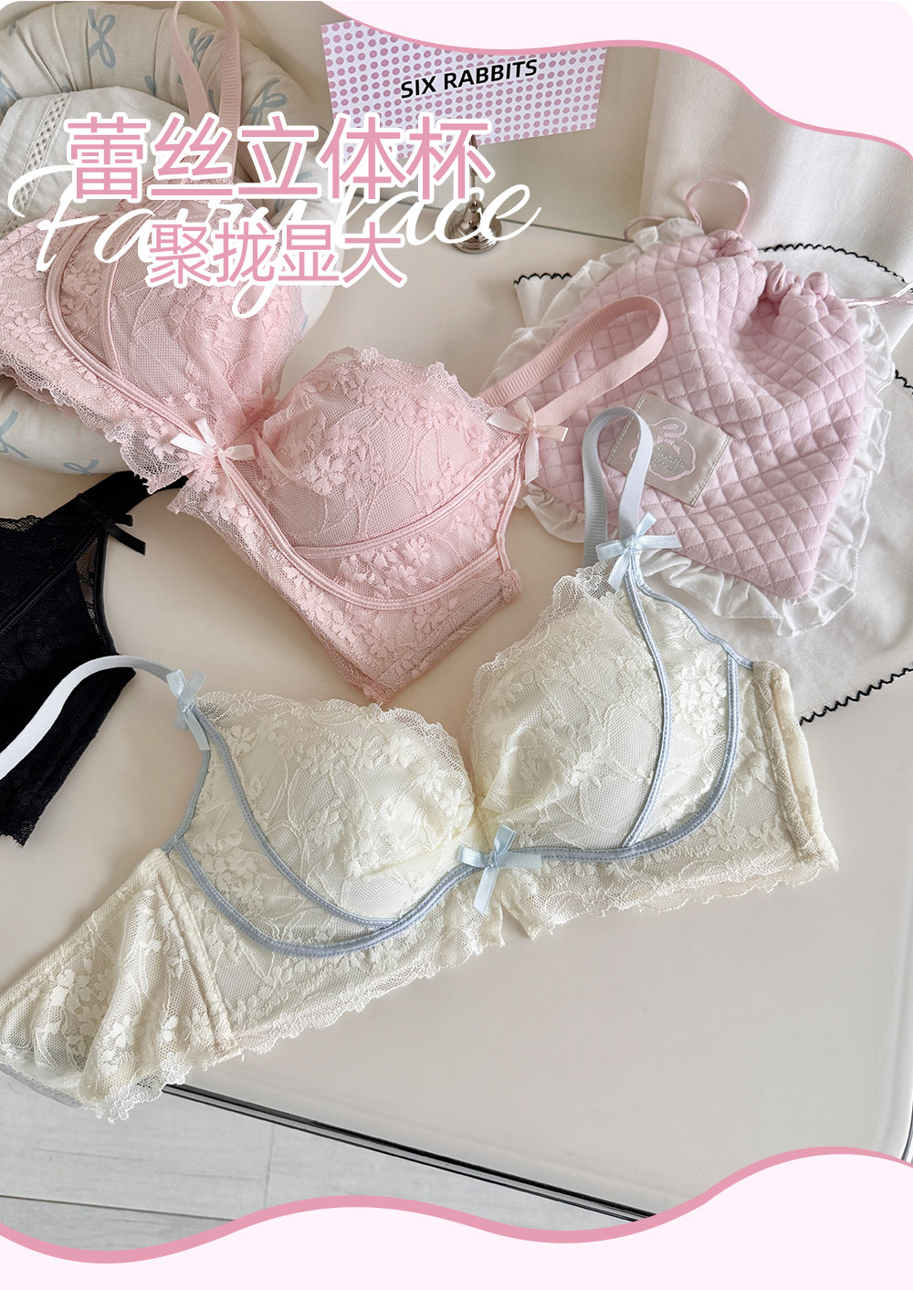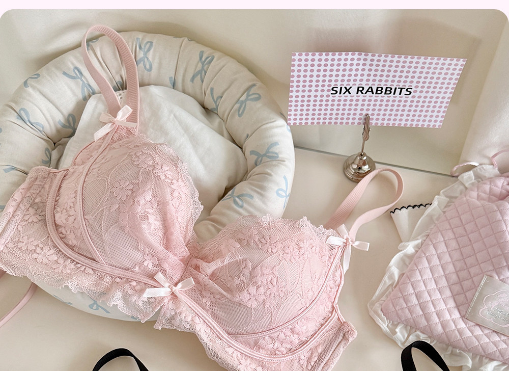 六隻兔子無鋼圈內衣女小胸聚攏顯大文胸側收副乳防下垂蕾絲胸罩