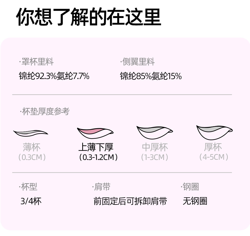 | 罩杯款式 | 3/4罩杯 |