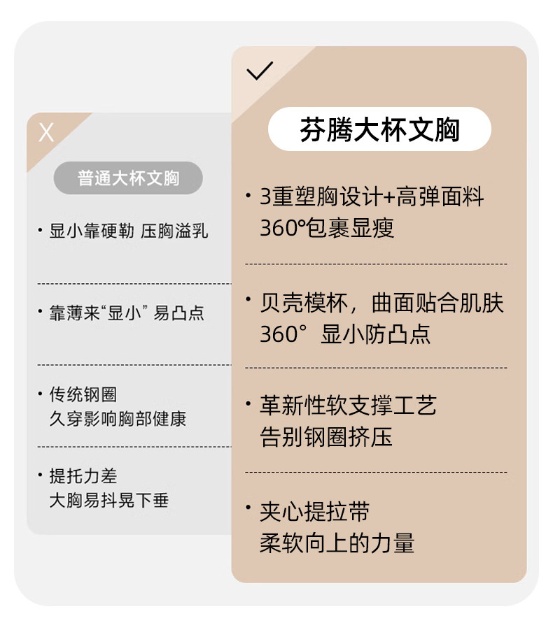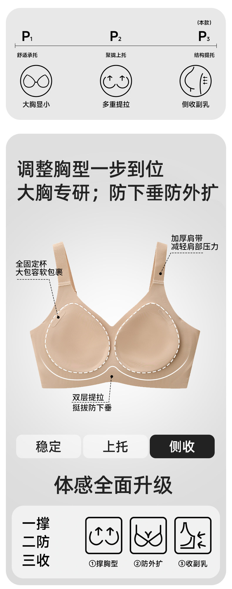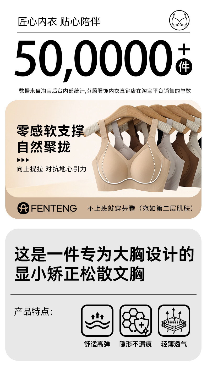 芬騰無痕內衣女聚攏防下垂提拉反重力大胸顯小收副乳調整型文胸罩