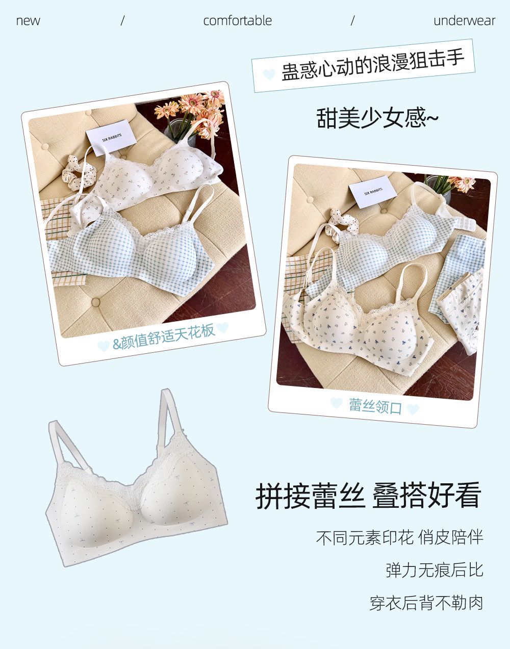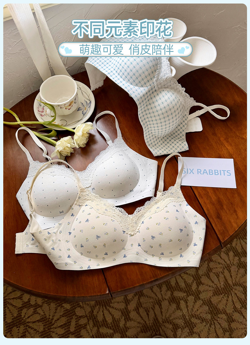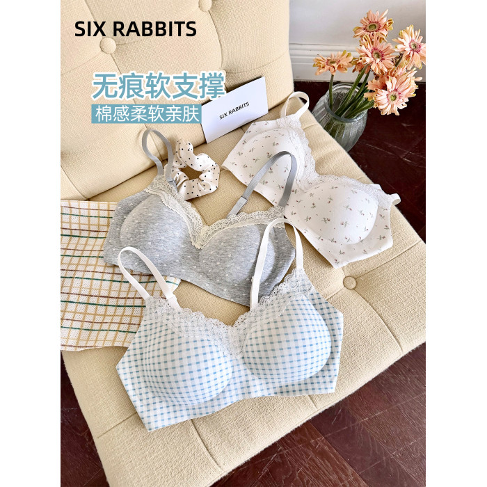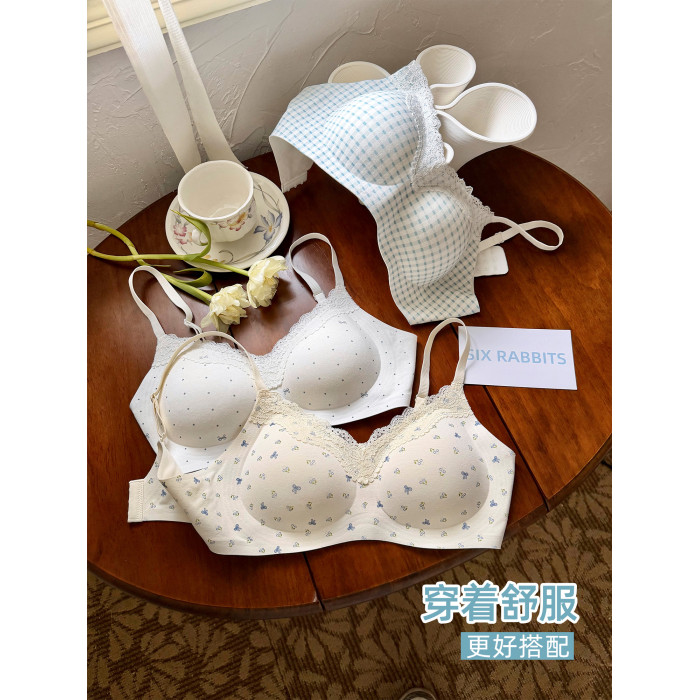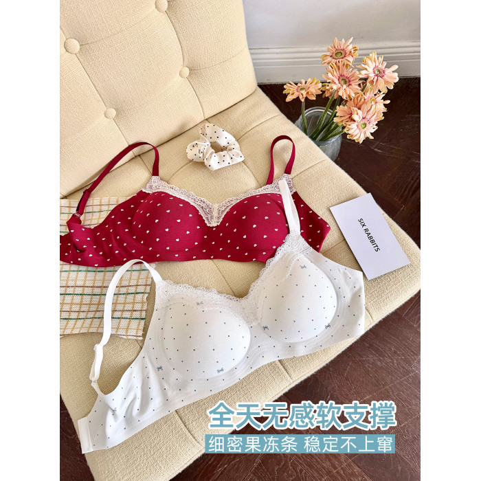 六隻兔子內衣女小胸聚攏深v領無鋼圈胸罩收副乳防下垂甜美風文胸