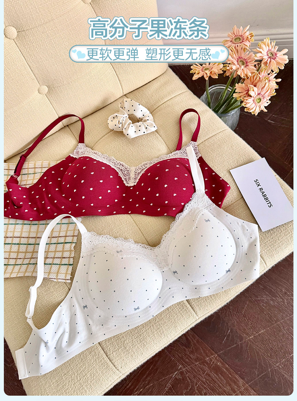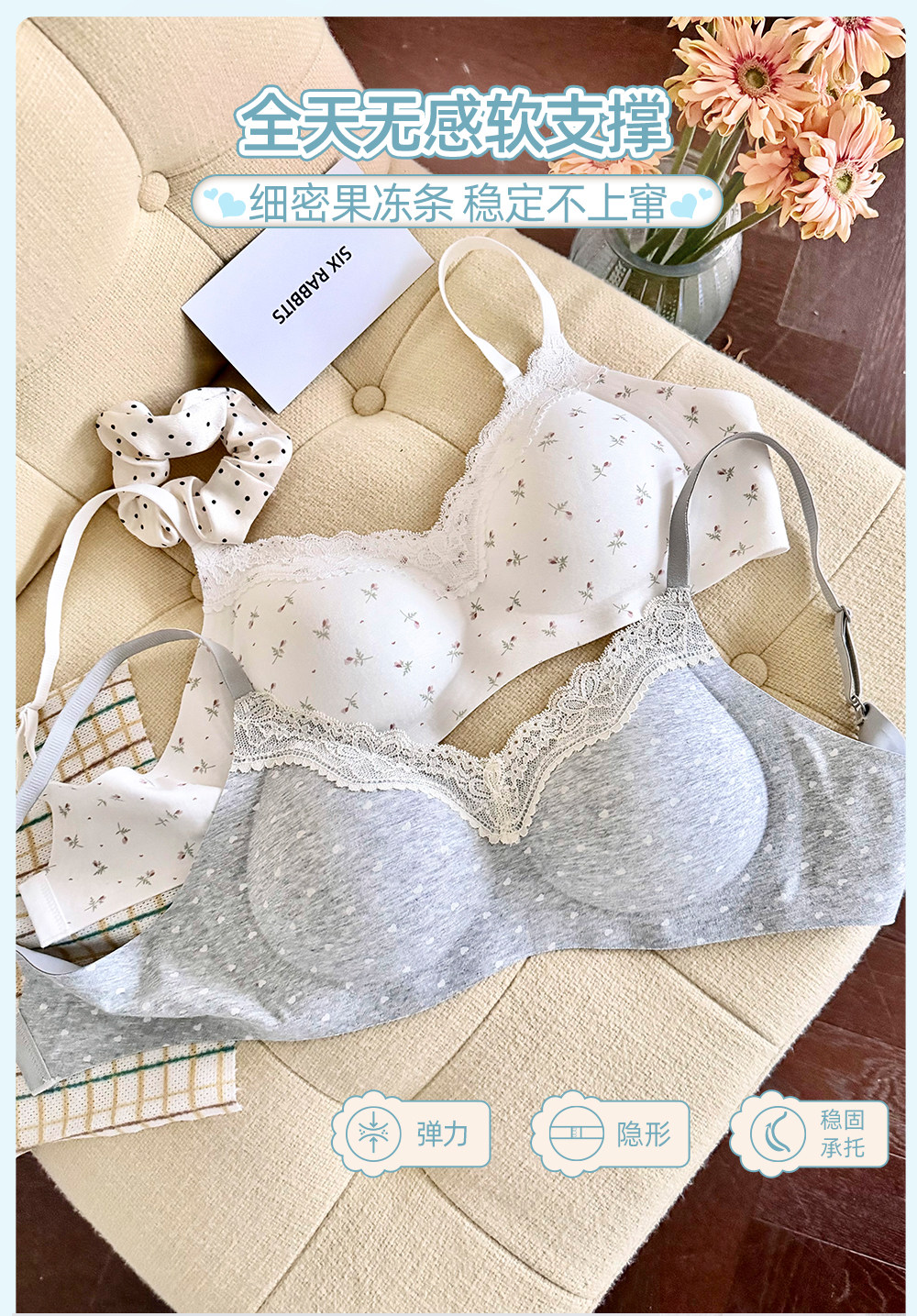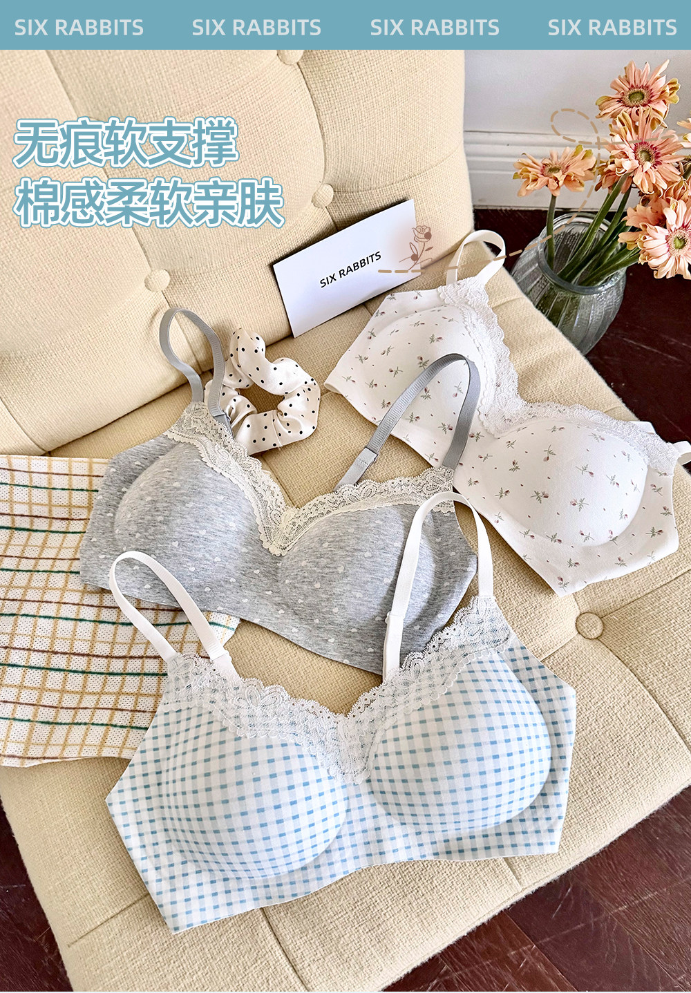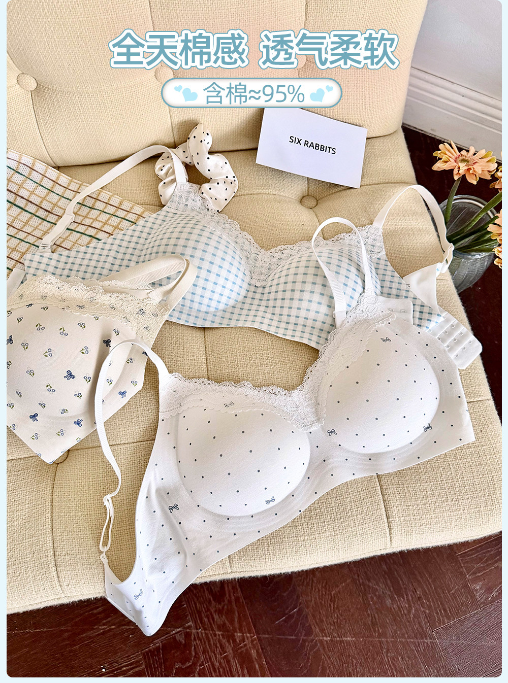 六隻兔子內衣女小胸聚攏深v領無鋼圈胸罩收副乳防下垂甜美風文胸