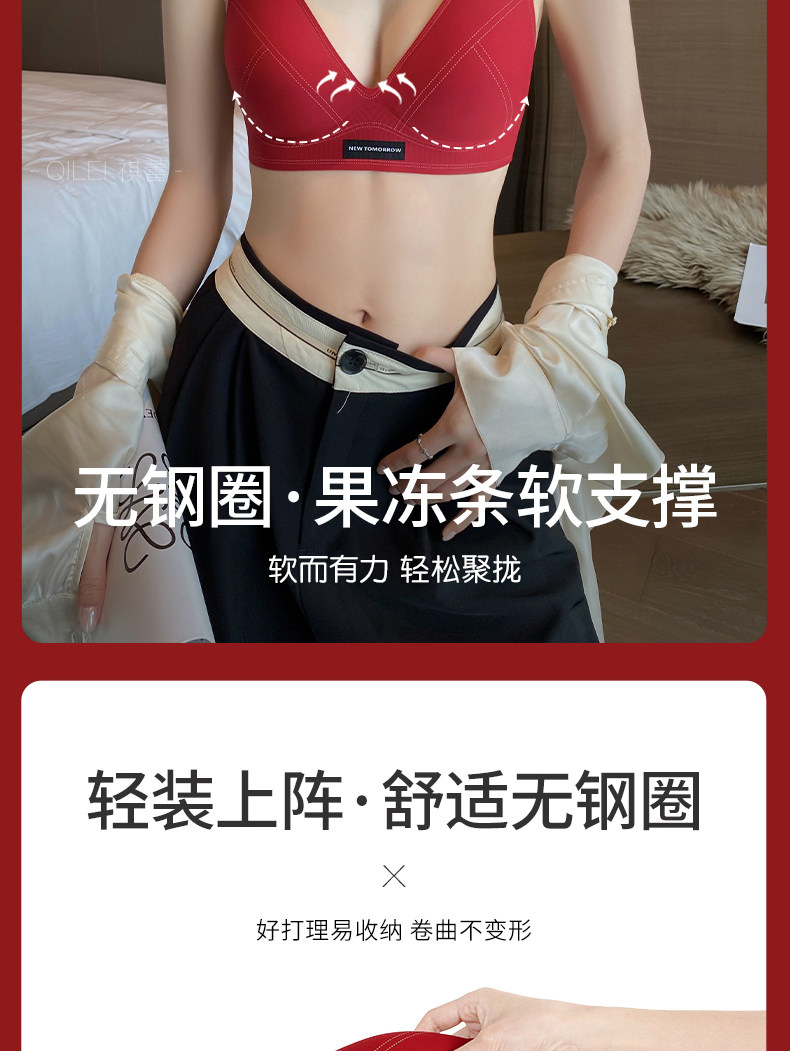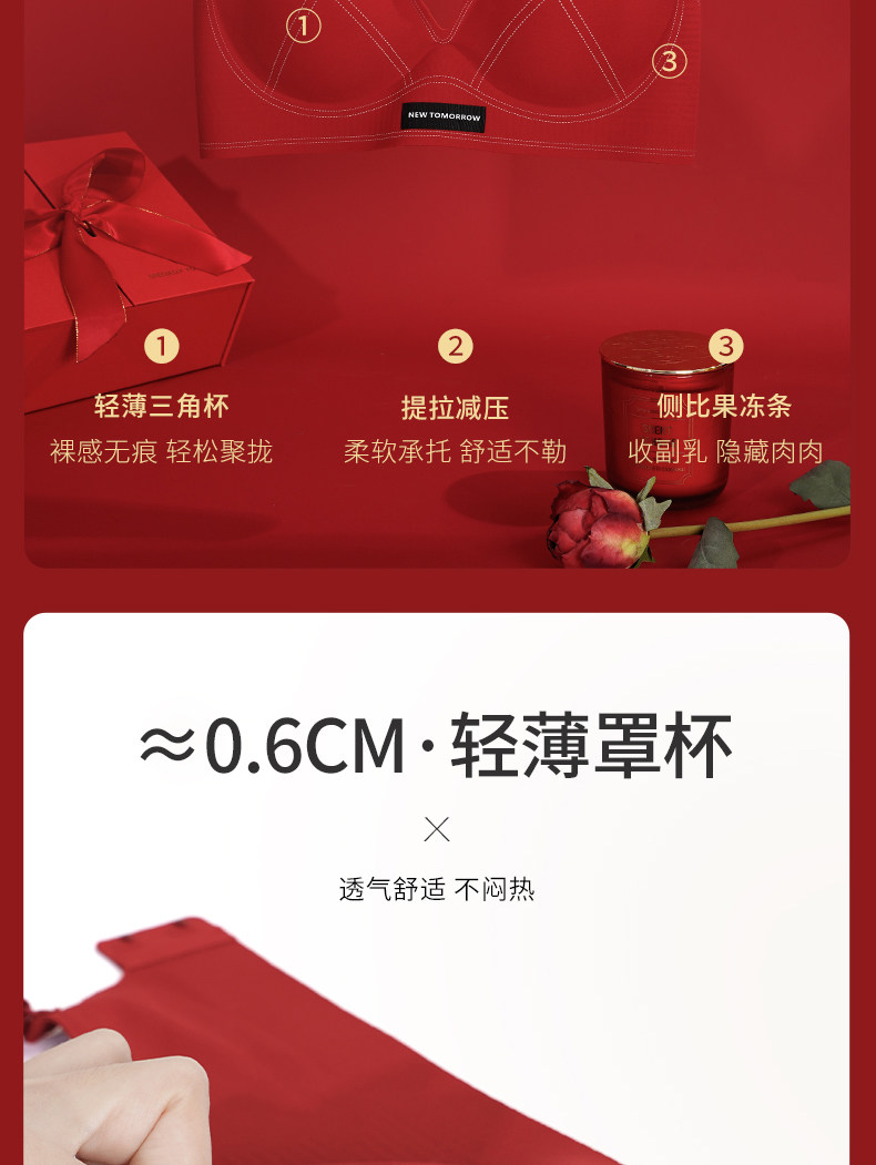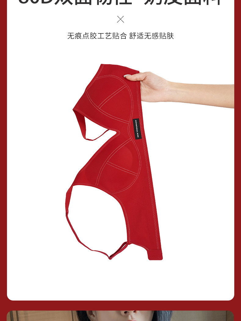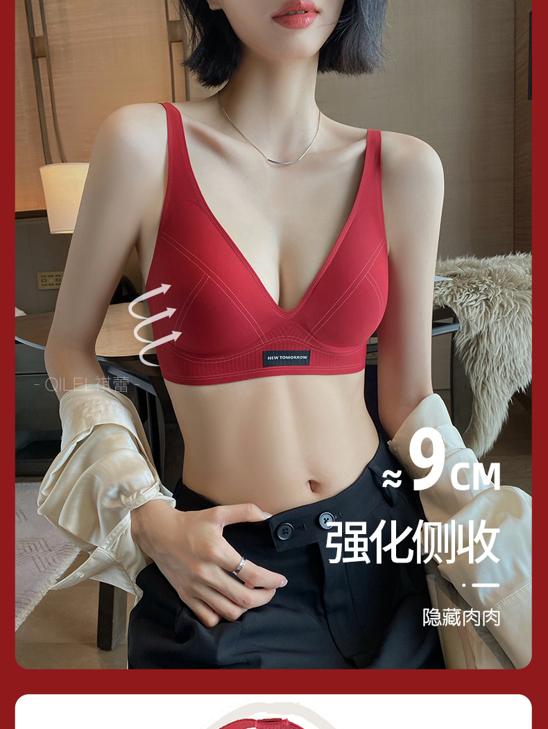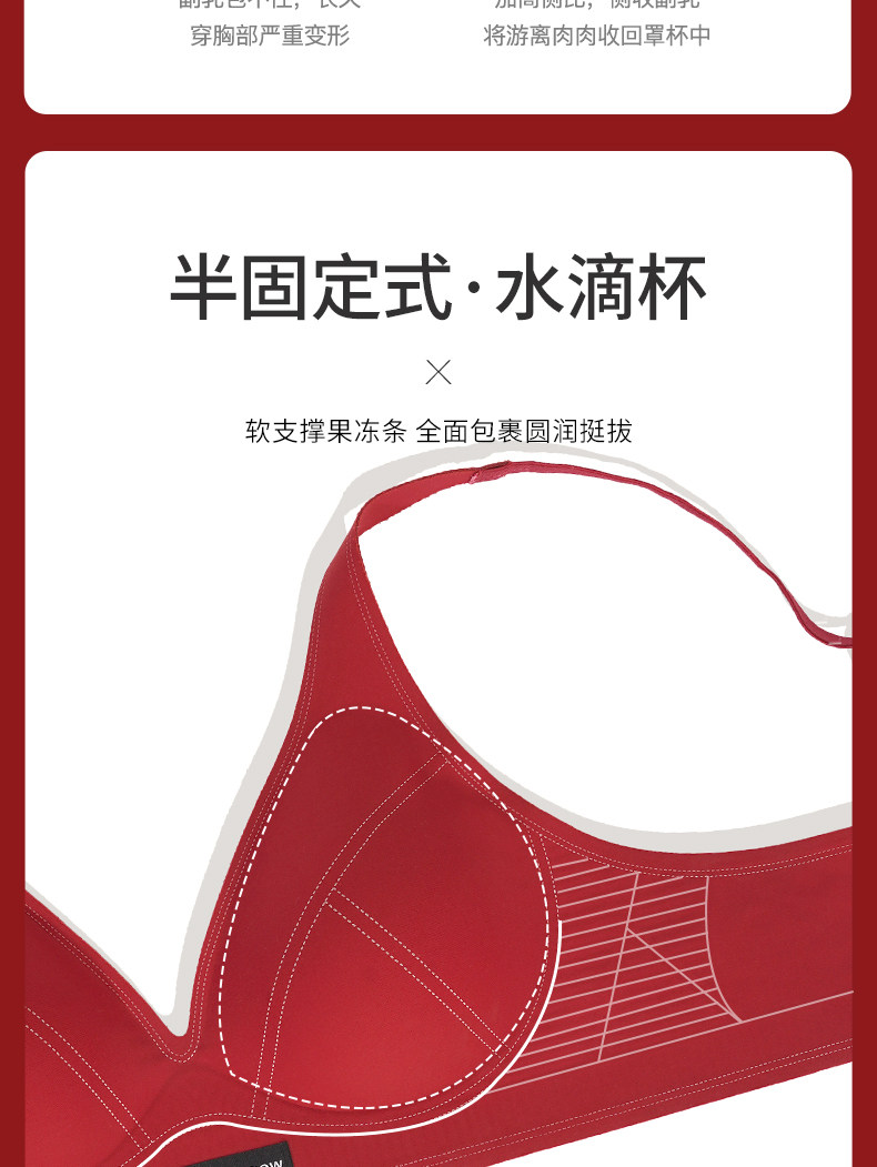 紅色套裝內衣女小胸聚攏收副乳無痕無鋼圈本命年結婚新娘文胸秋冬