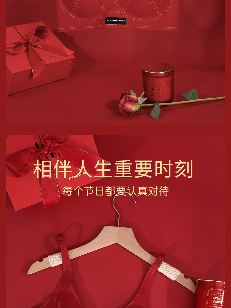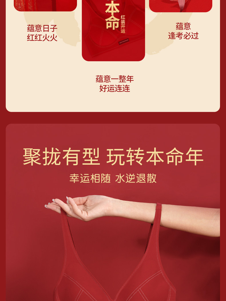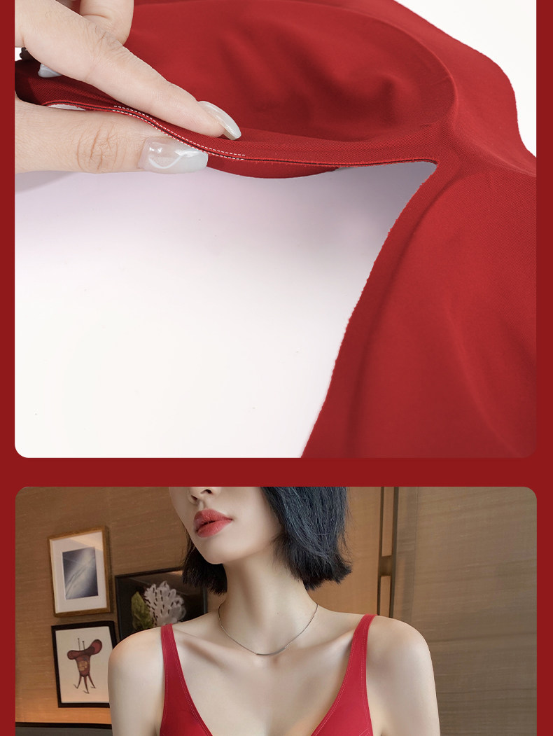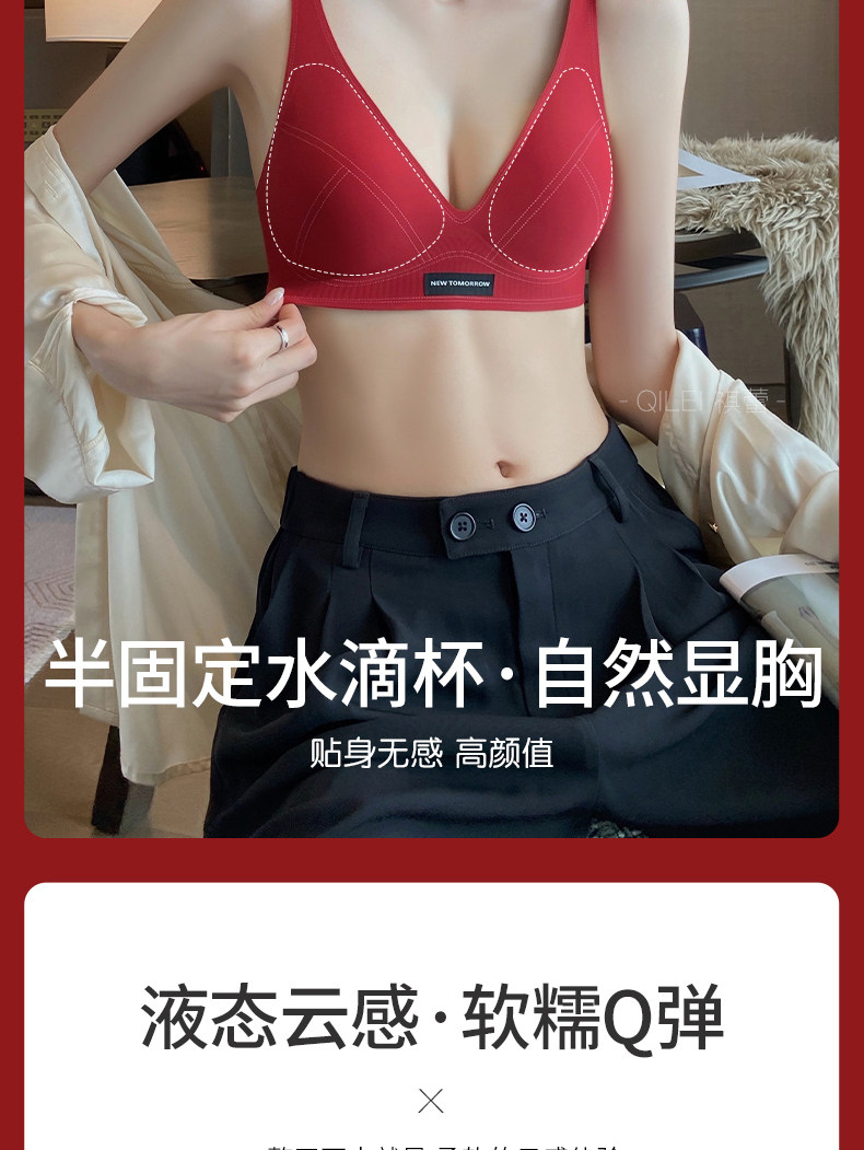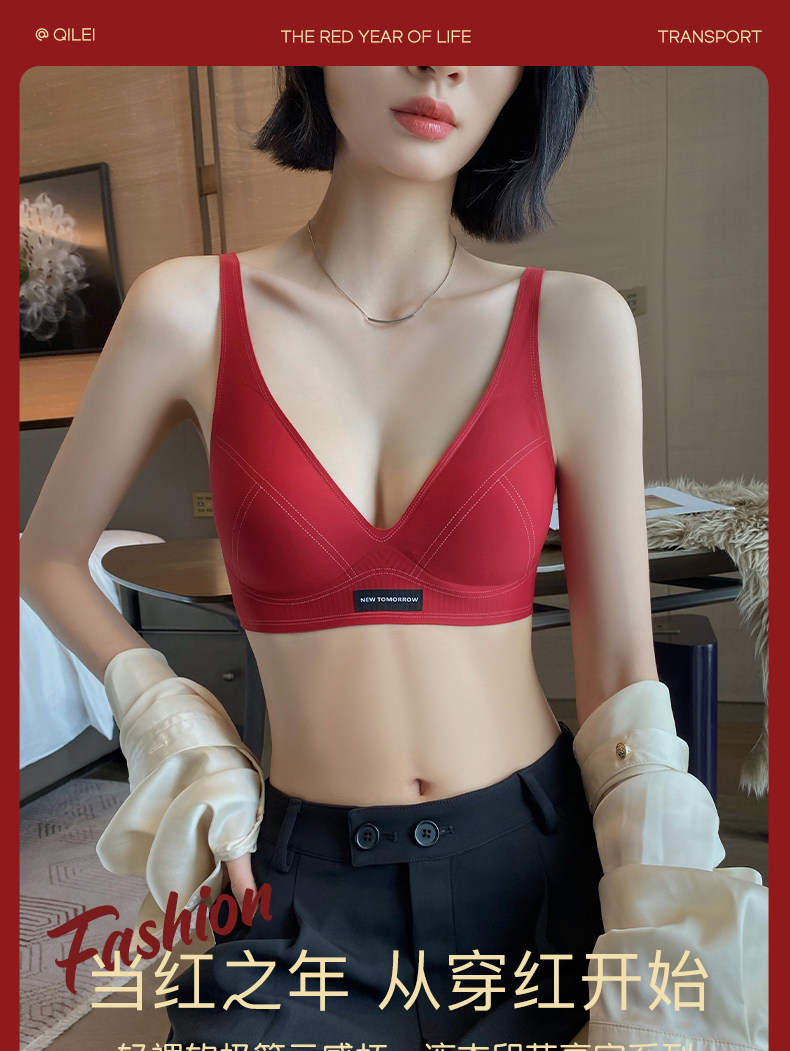 紅色套裝內衣女小胸聚攏收副乳無痕無鋼圈本命年結婚新娘文胸秋冬