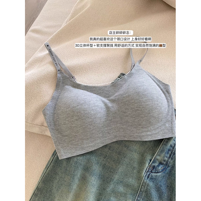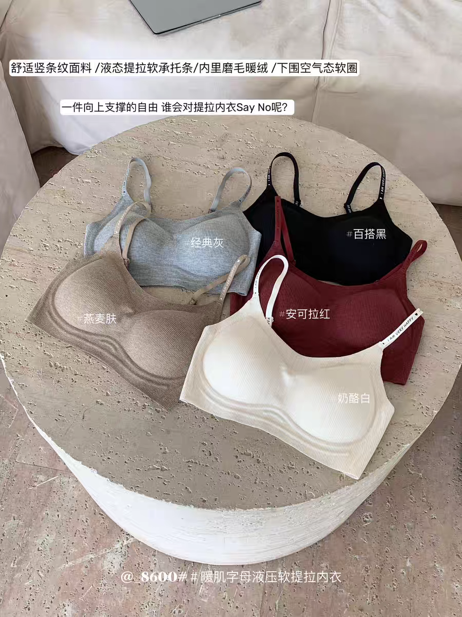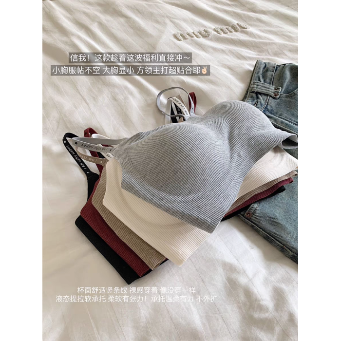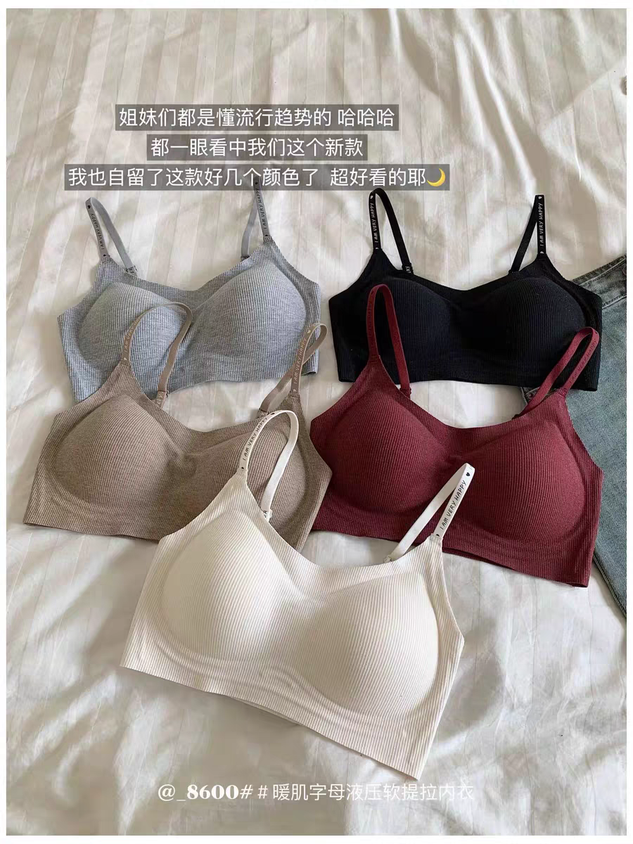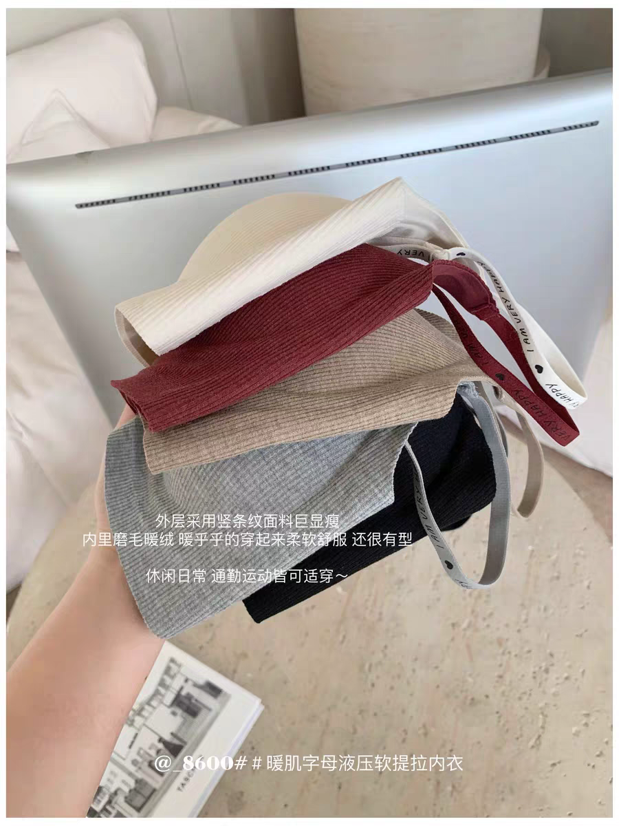 秋冬暖肌運動內衣女無痕小胸聚攏保暖磨毛無鋼圈背心式固定杯文胸