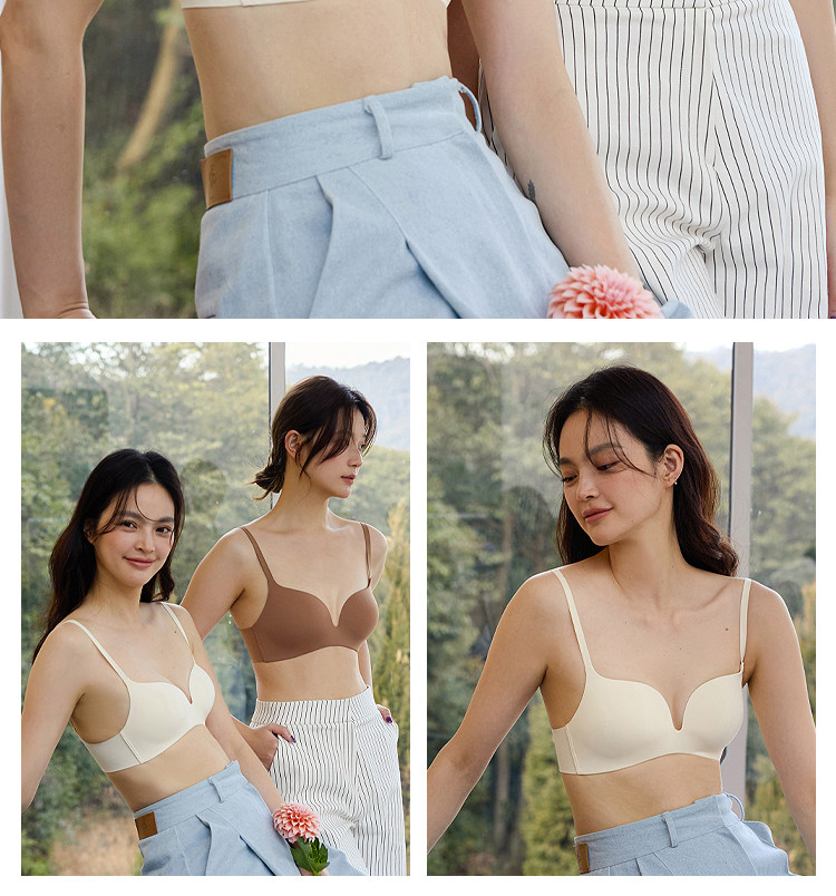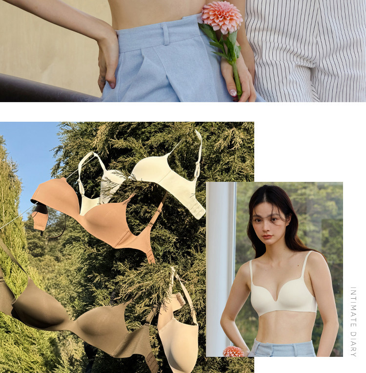 親膚日記無痕內衣套裝女小胸聚攏顯大一片式文胸不空杯無鋼圈胸罩