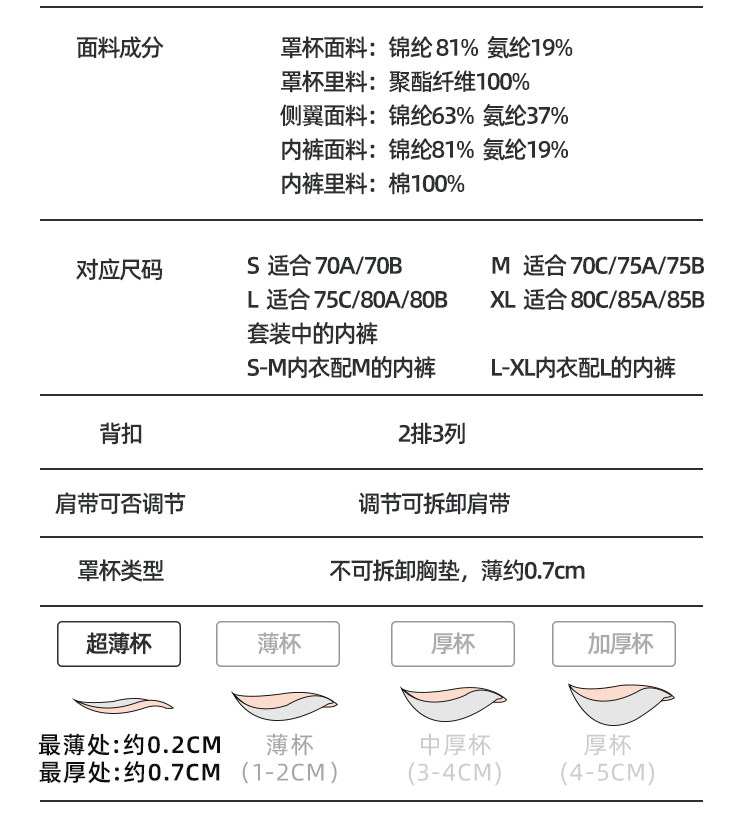| 罩杯外層材質 | 錦綸 |