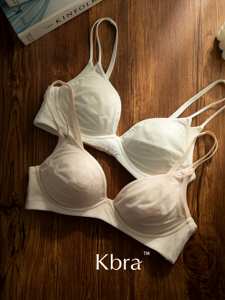 Kbra法式蕾絲內衣女細肩帶小胸聚攏女士胸罩無痕上托無鋼圈文胸