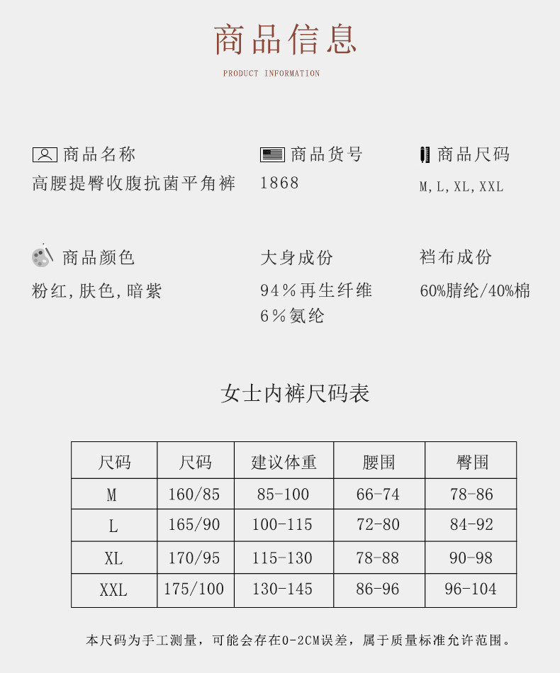| 大身材質成分 | 粘膠纖維(粘纖)94% 聚氨酯彈性纖維(氨綸)6% |