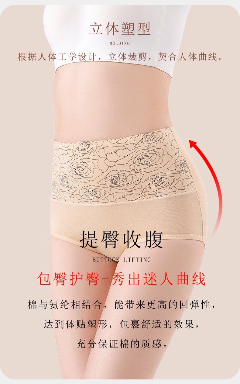 ab內褲女士平角褲高腰收腹褲抗菌提臀彈力透氣女生短褲1868