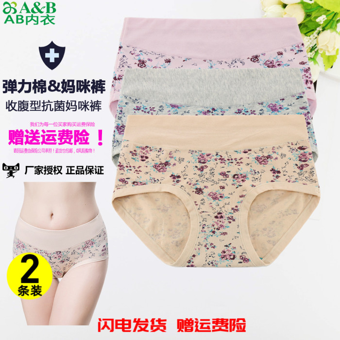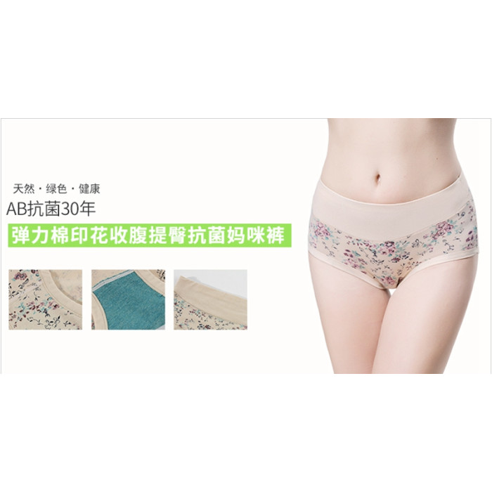 ab內褲女純棉彈力棉抗菌收腹褲舒適時尚中高腰小平角媽咪褲0118