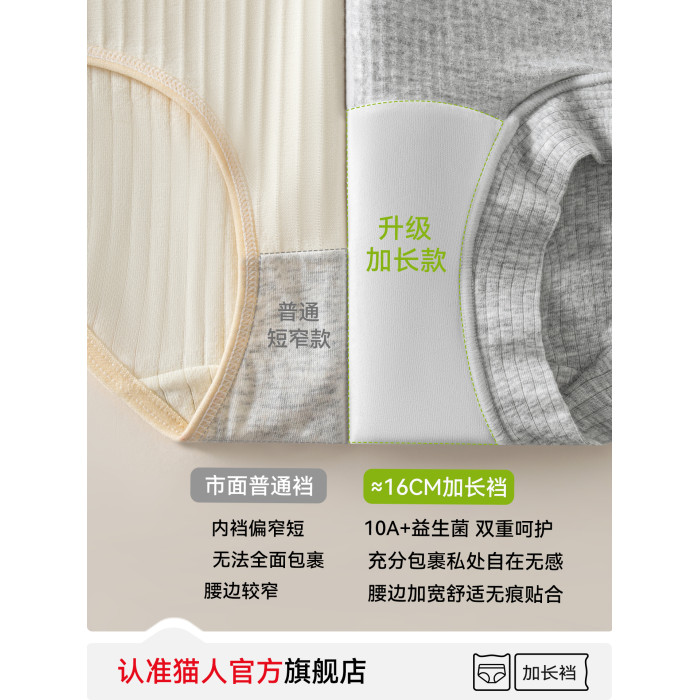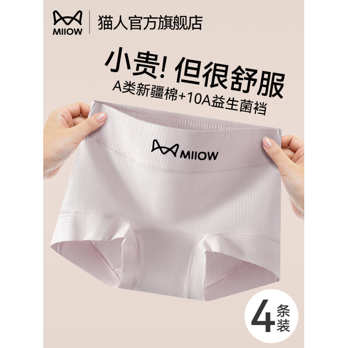 貓人平角女士內褲純棉2025新款全棉抗菌襠無痕全包臀大碼四角短褲