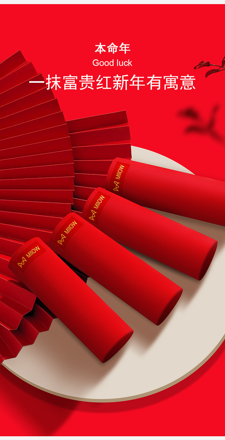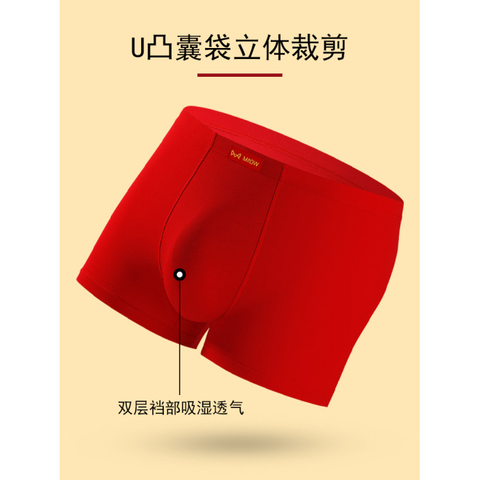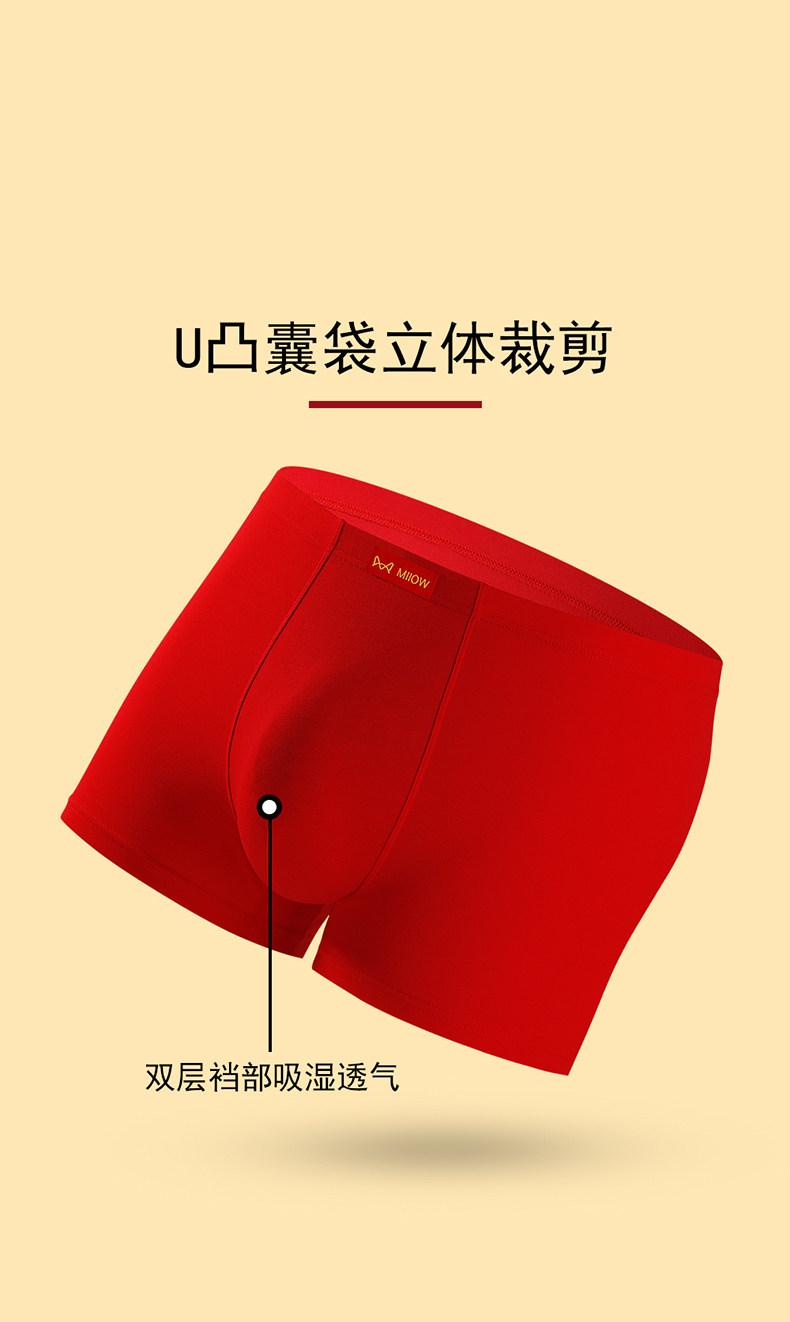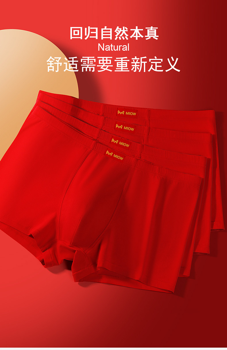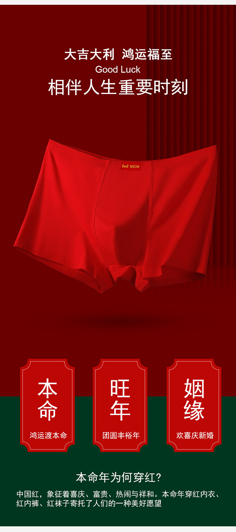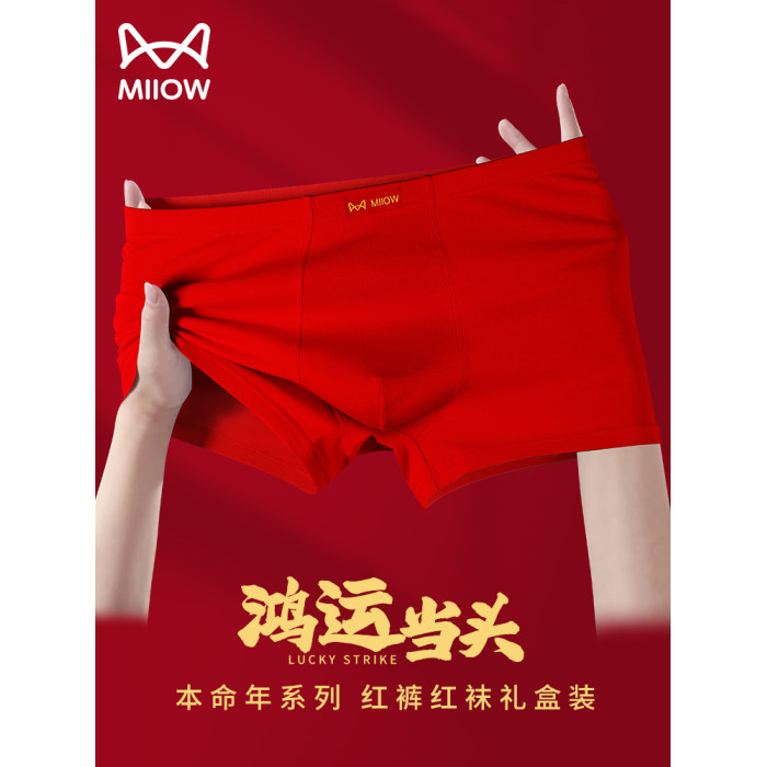 貓人男士名牌內褲男款純棉本命年紅色2026屬馬男生專用平角短褲頭