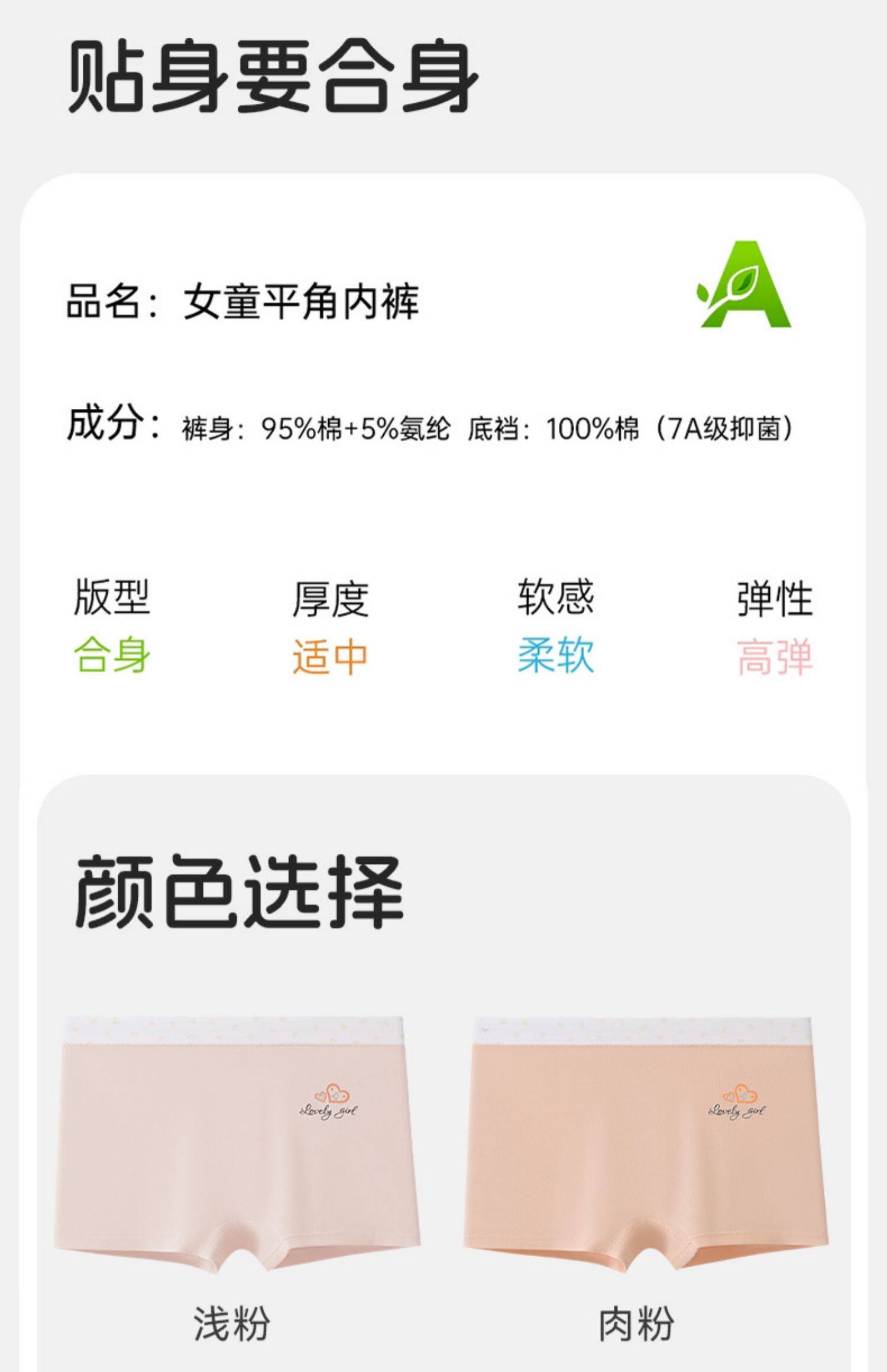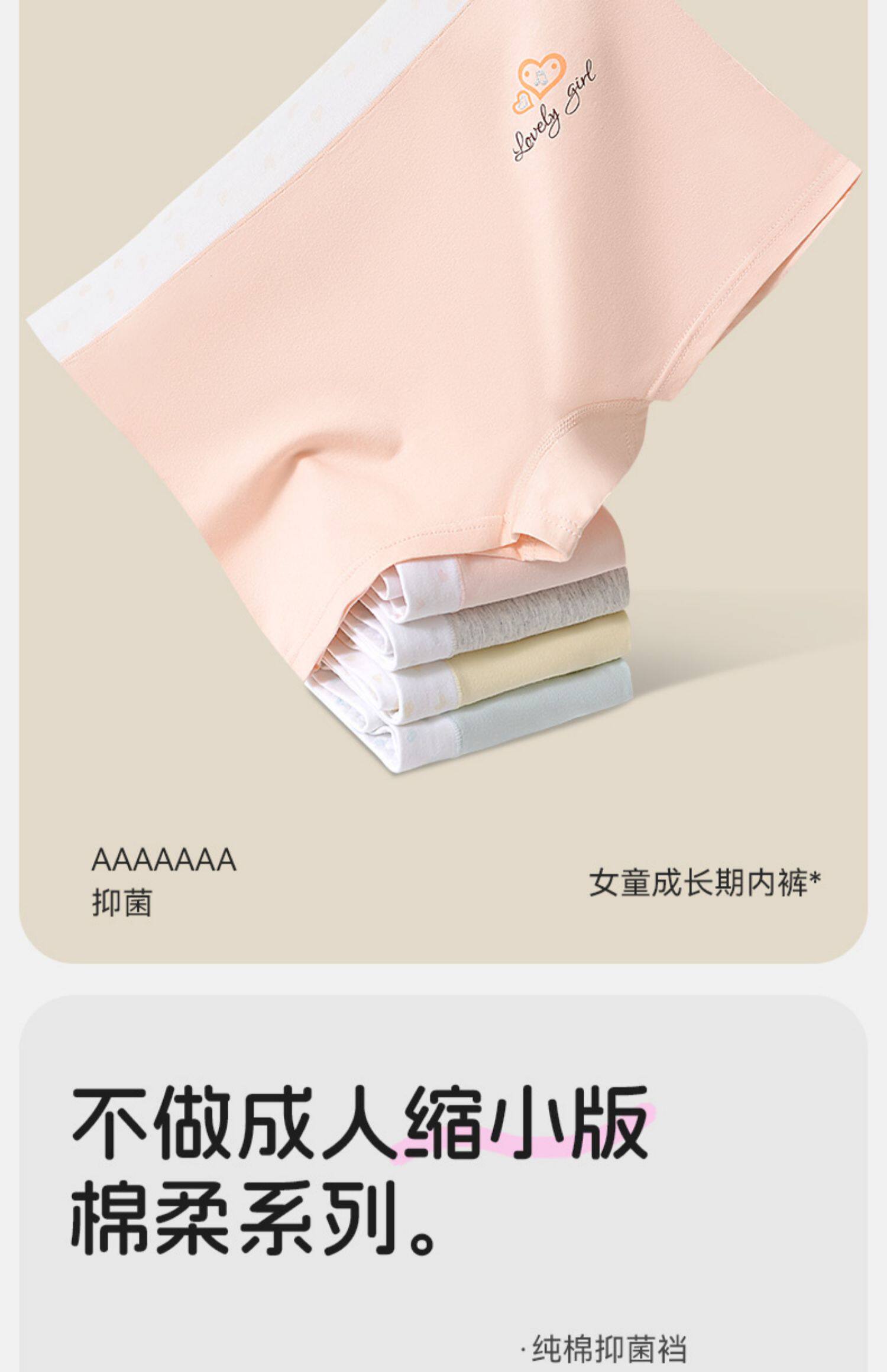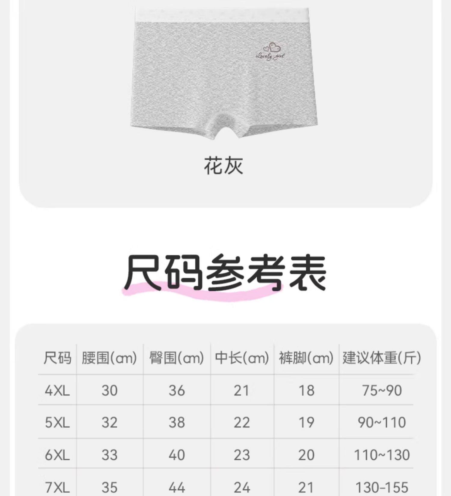 A類發育期無痕平角褲初中學生內褲女生四角短褲純棉抗菌全棉大童