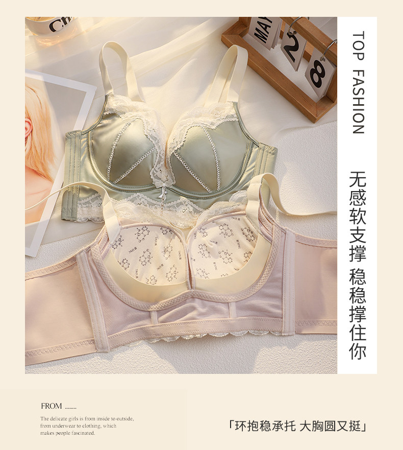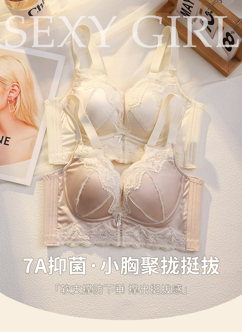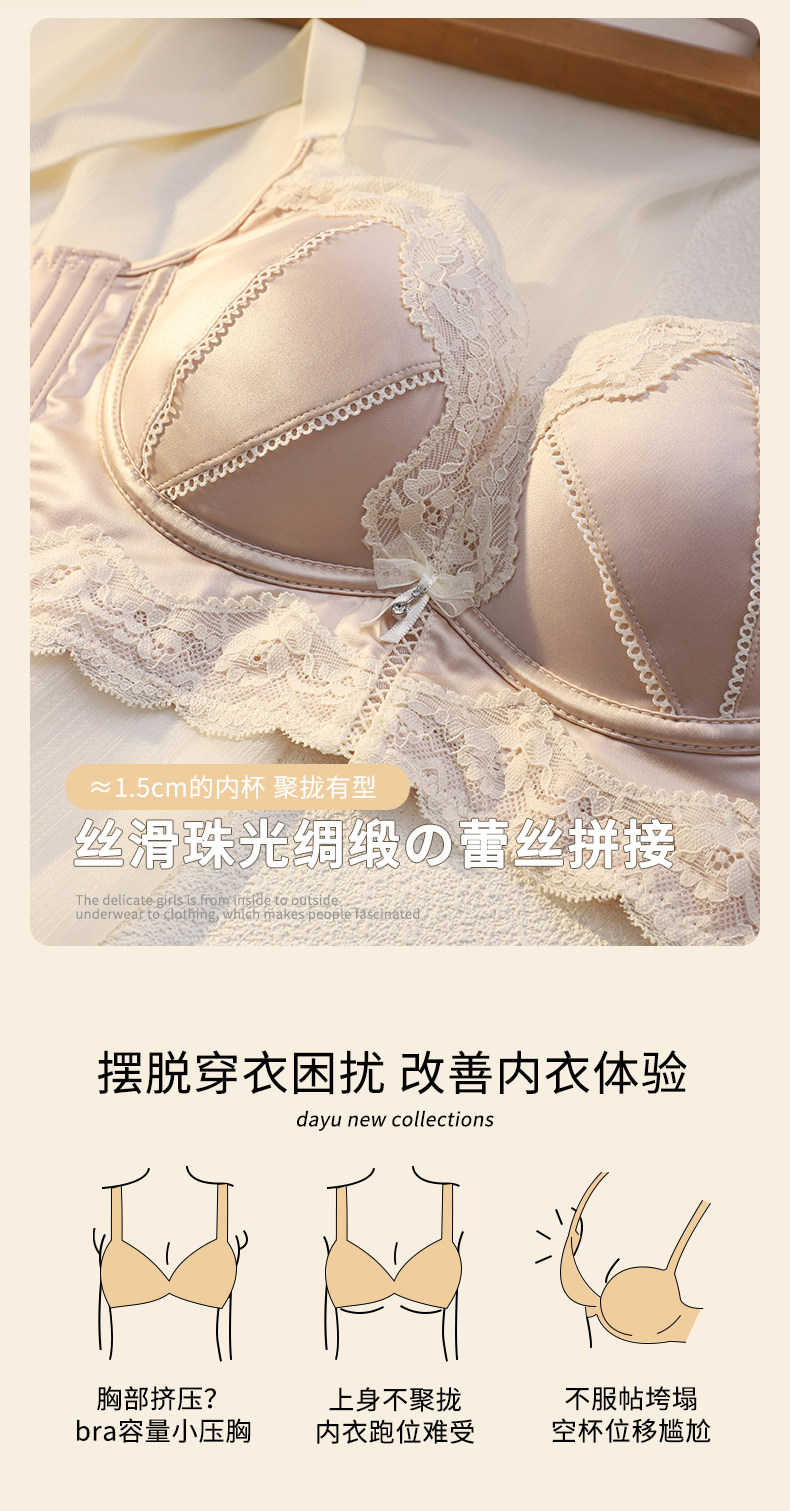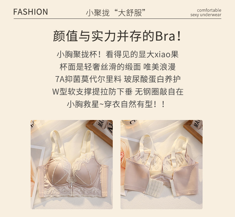 無痕緞面內衣女小胸聚攏顯大收副乳防下垂調整型無鋼圈性感文胸罩