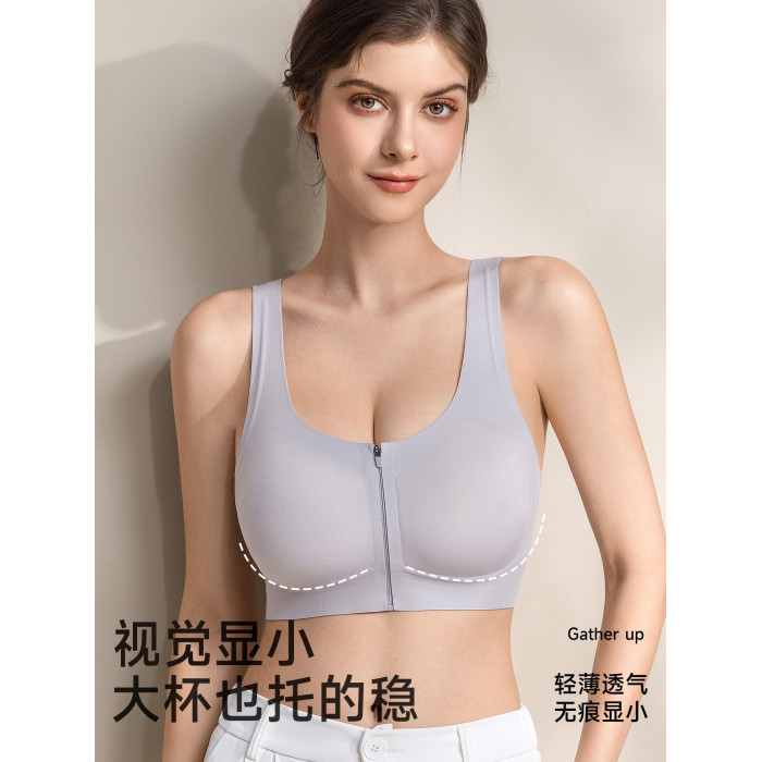 婷美前拉鍊運動內衣女防震胸大聚攏視覺顯小背心式無鋼圈塑型文胸