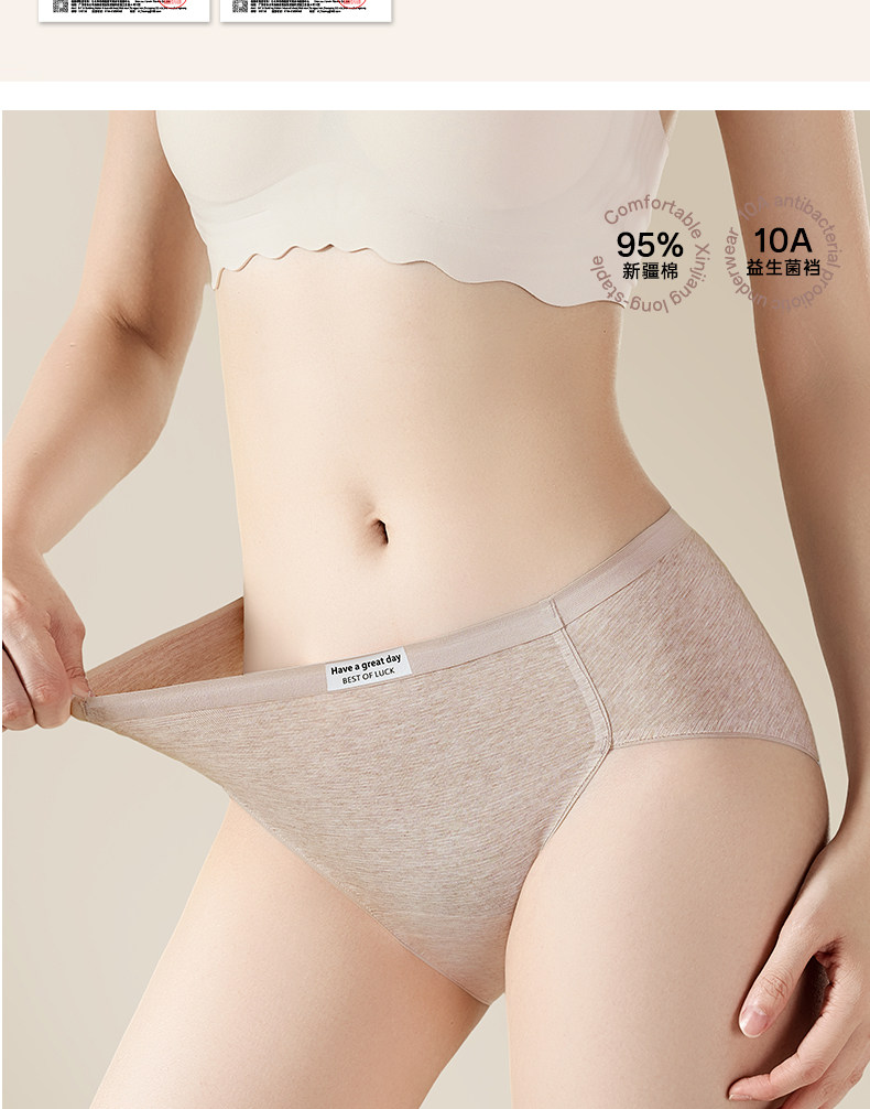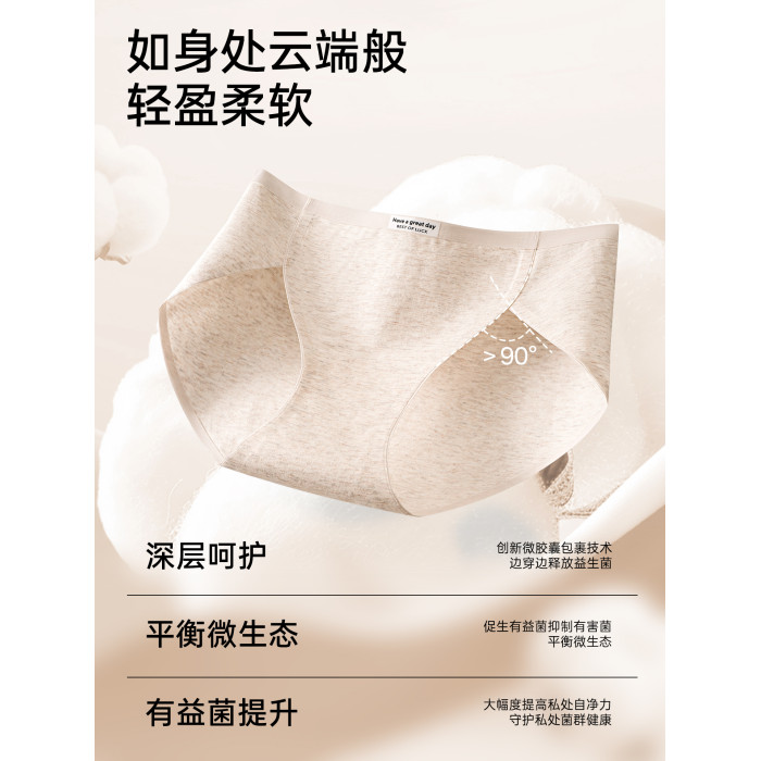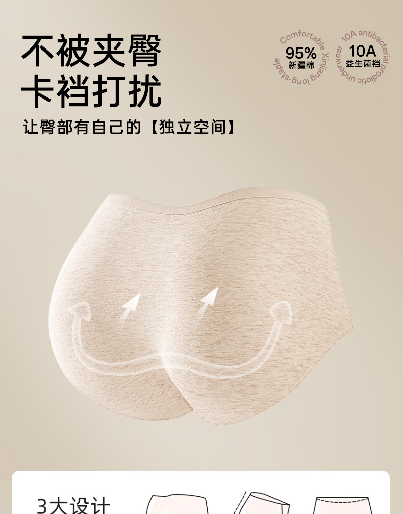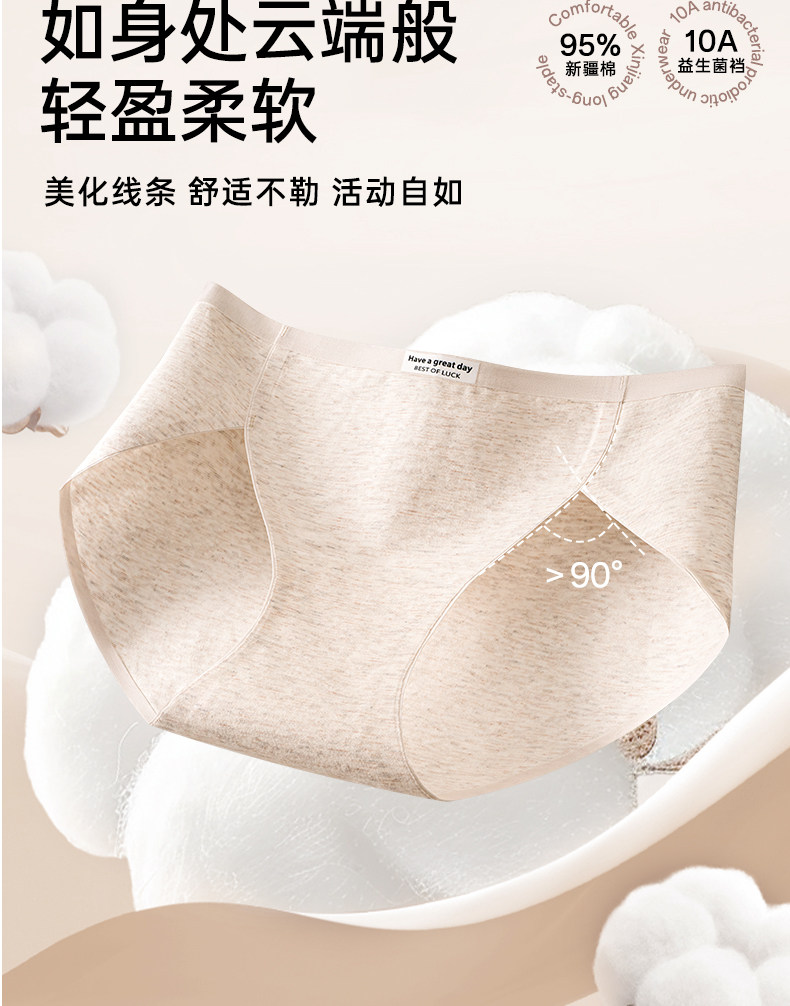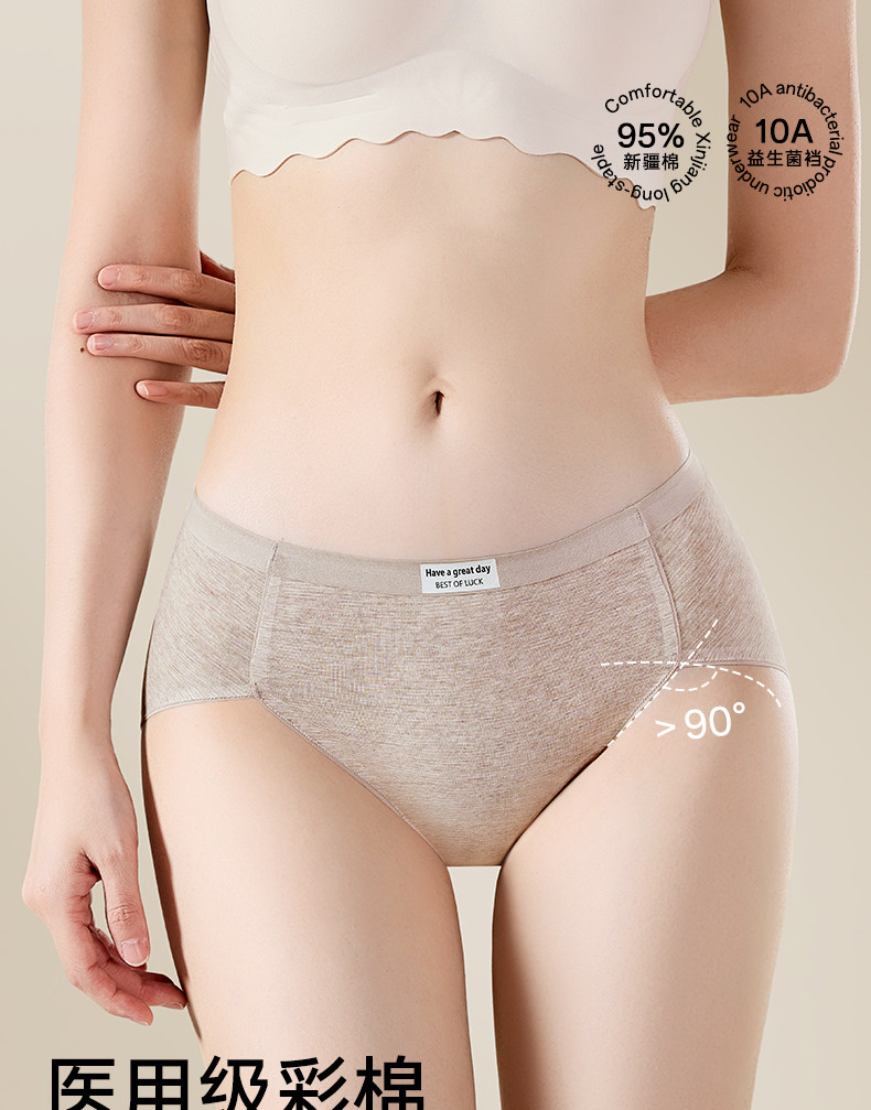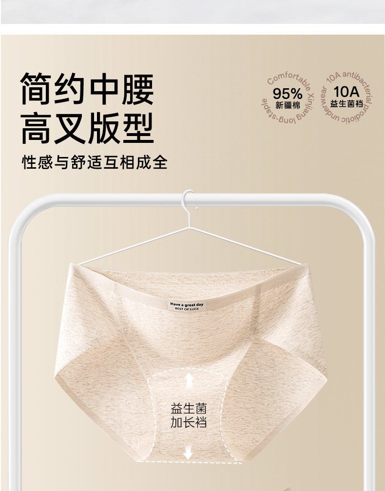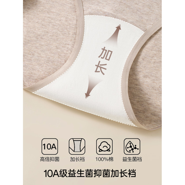 南極人無痕內褲女士純棉10A抗菌全棉襠加長透氣少女生中腰三角褲