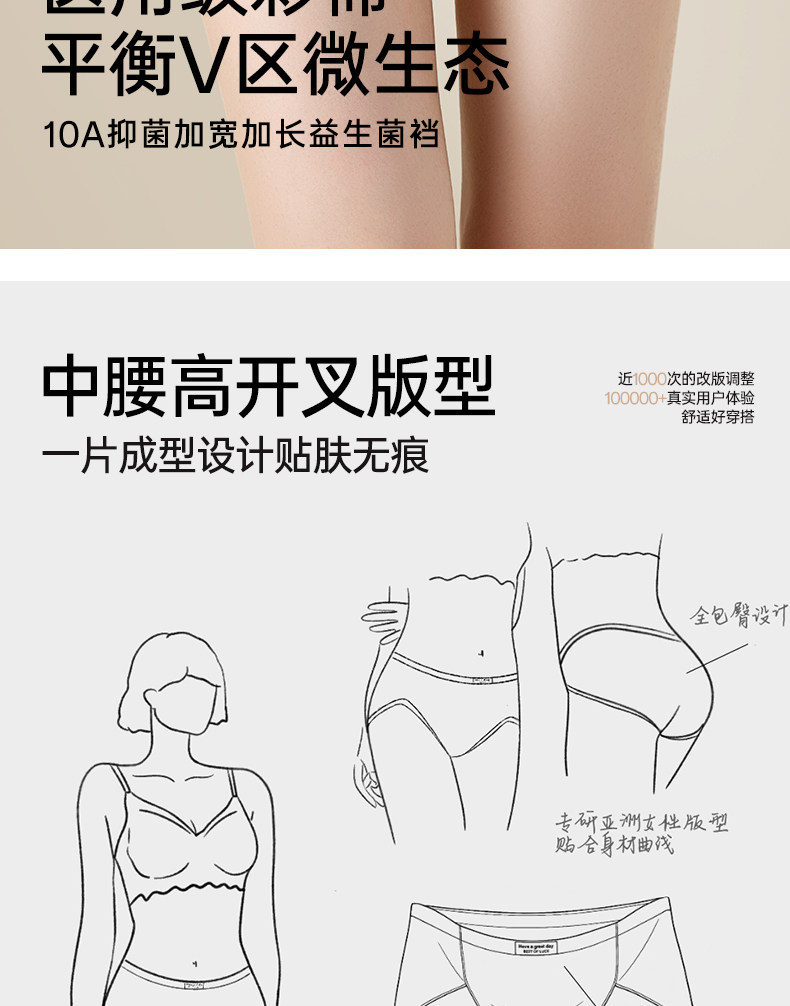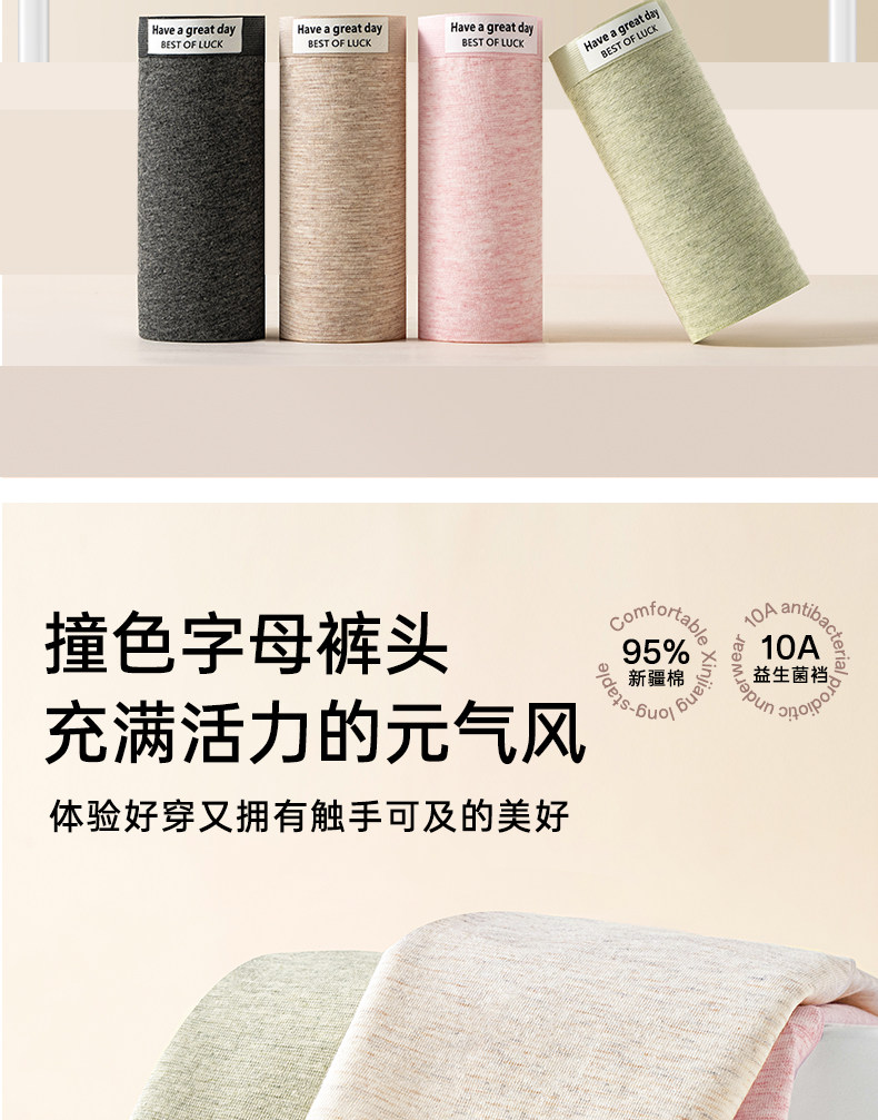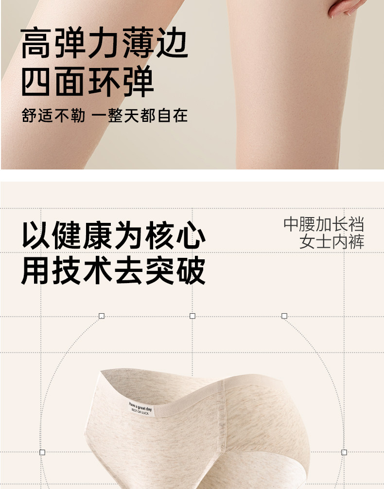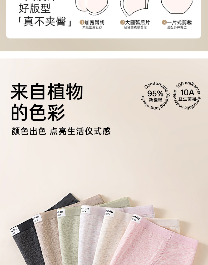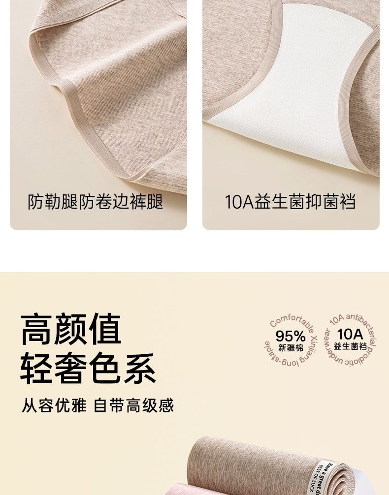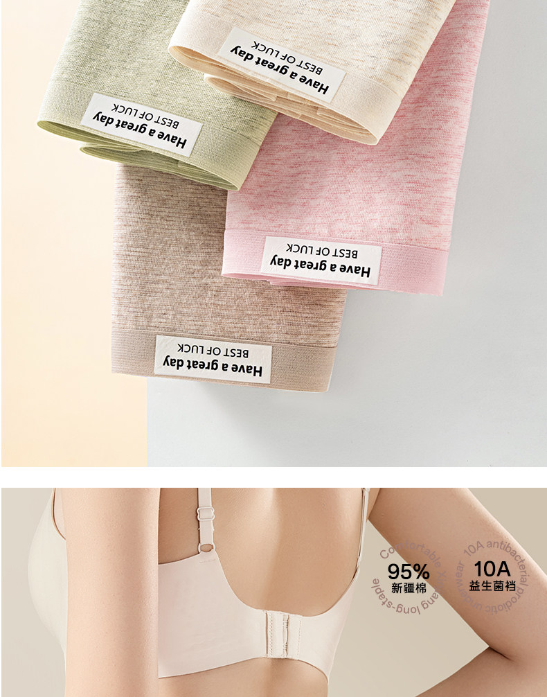 南極人無痕內褲女士純棉10A抗菌全棉襠加長透氣少女生中腰三角褲