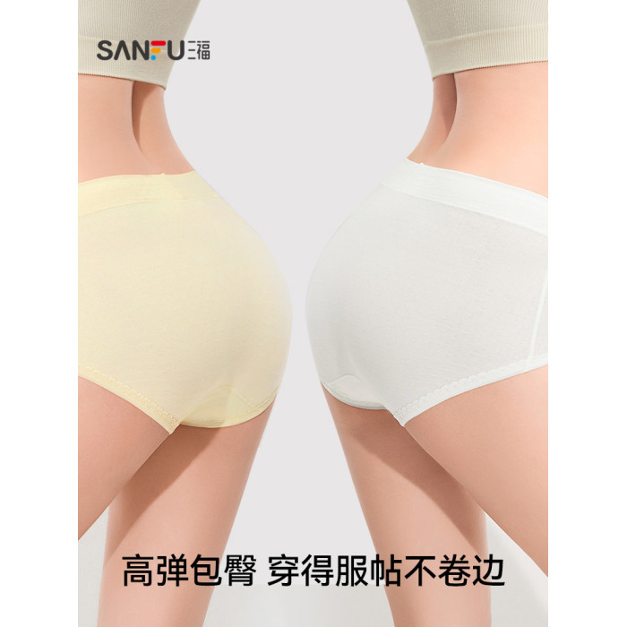 三福女中腰半平角內褲唯美花邊成熟少婦柔軟舒適提臀內褲413641
