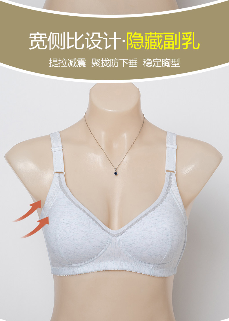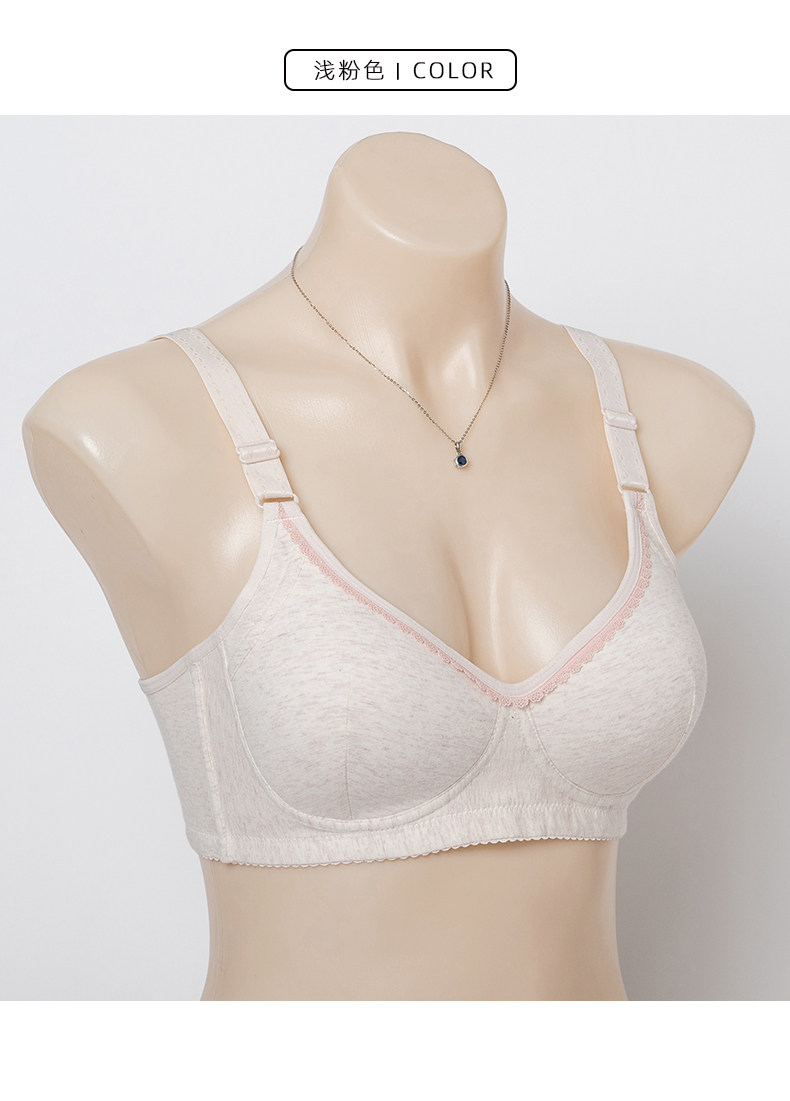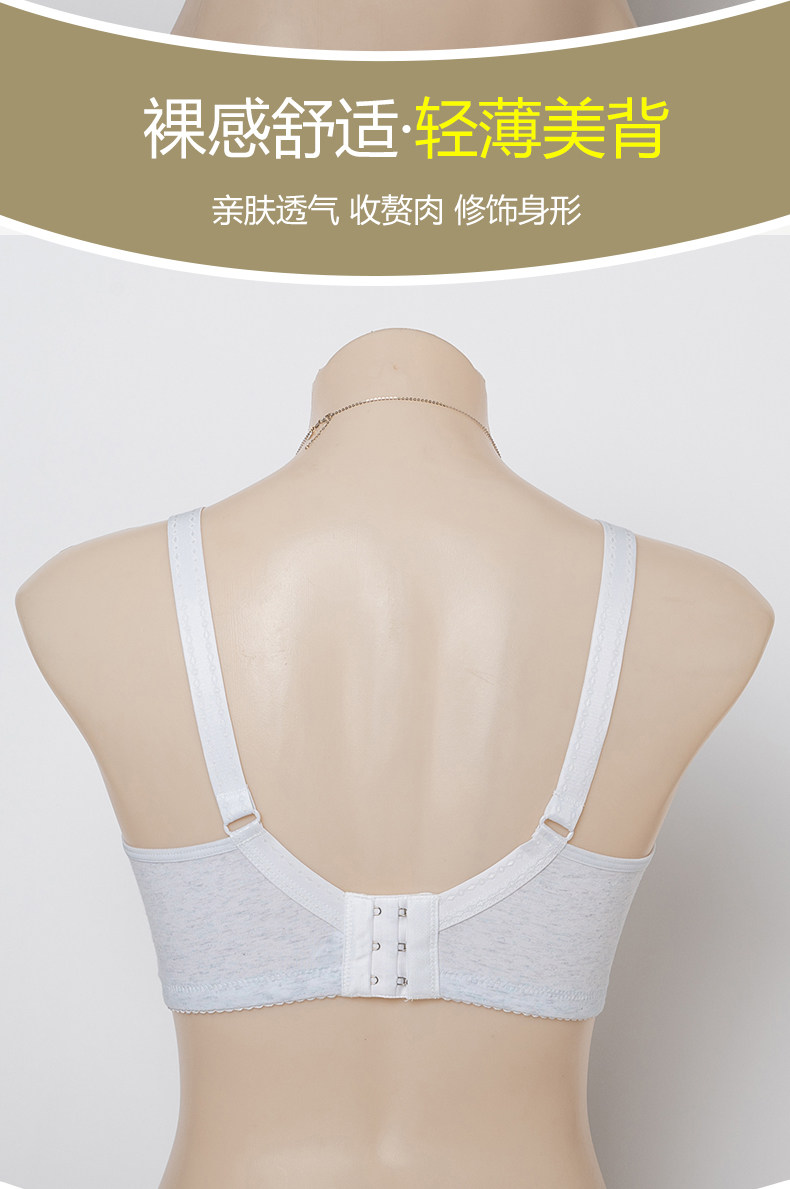 中老年純棉胸罩 無鋼圈薄海綿一體杯不跑杯後釦文胸媽媽內衣
