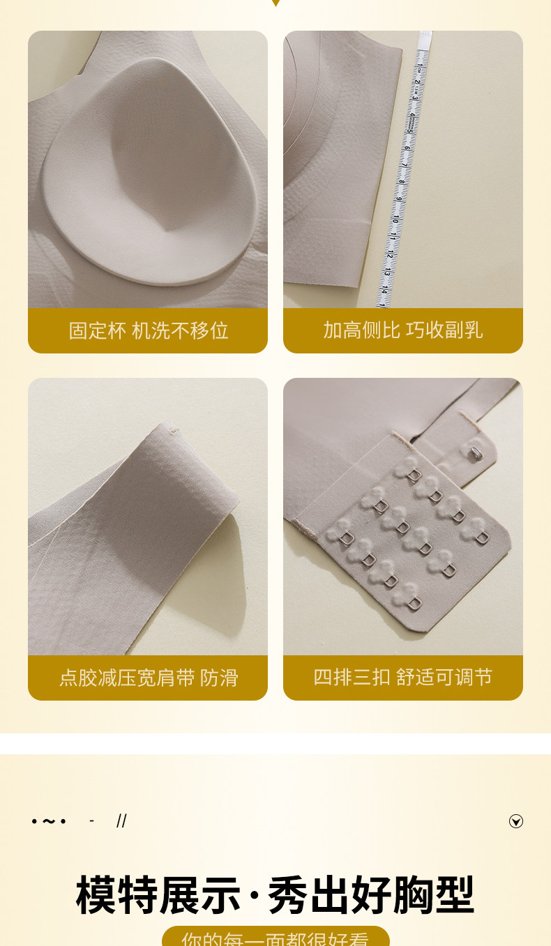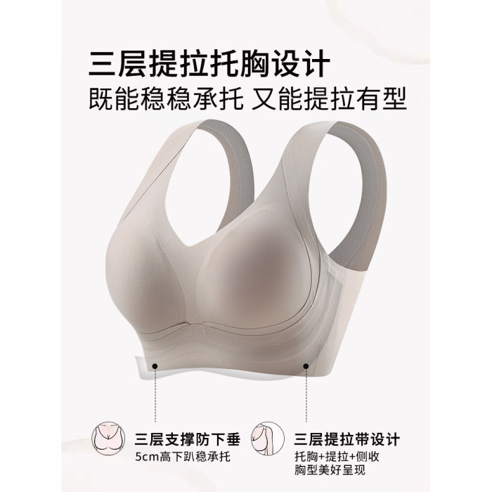 固定杯背釦式無痕內衣女防下垂收副乳聚攏文胸罩無鋼圈夏天季薄款