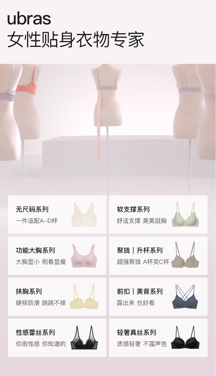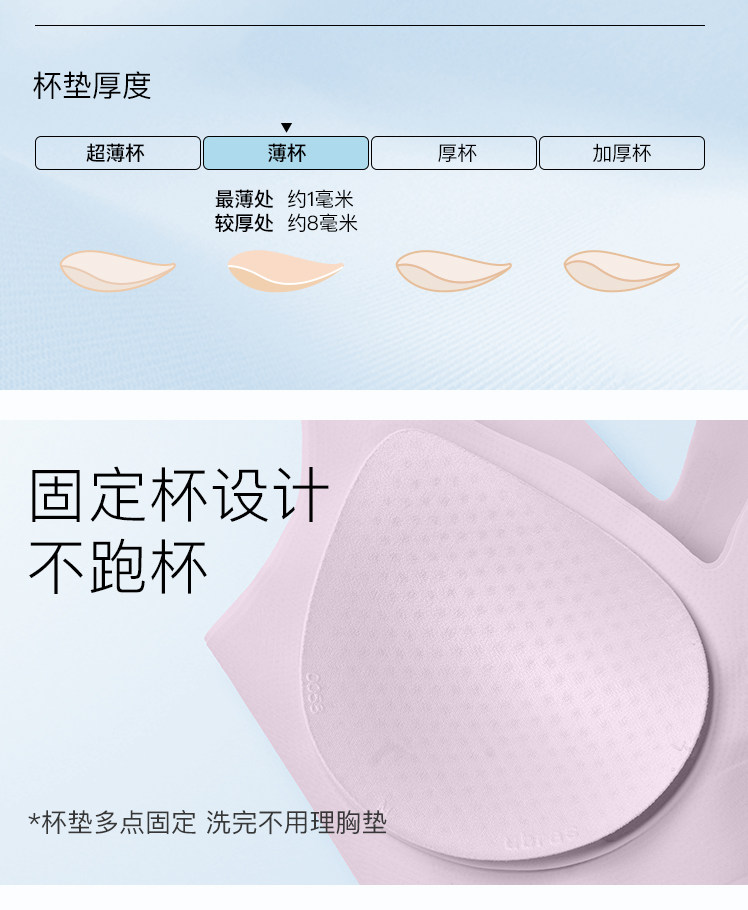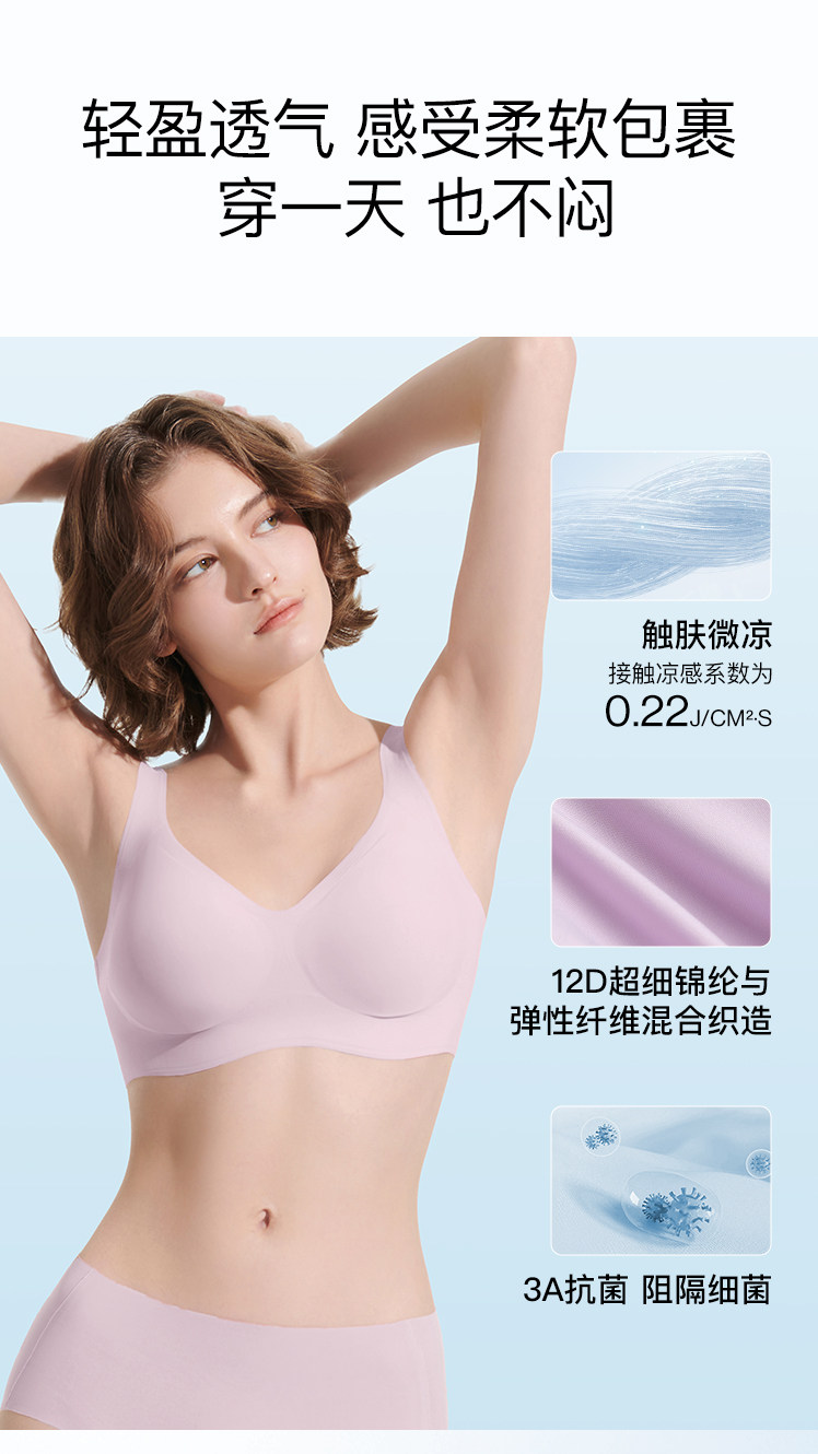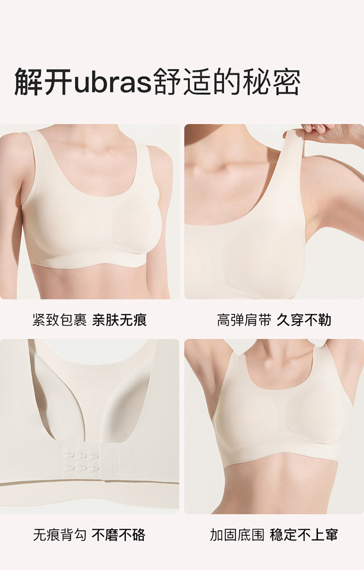 ubras無尺碼隱形背心文胸舒適無痕無鋼圈胸罩粉底液內衣女薄款