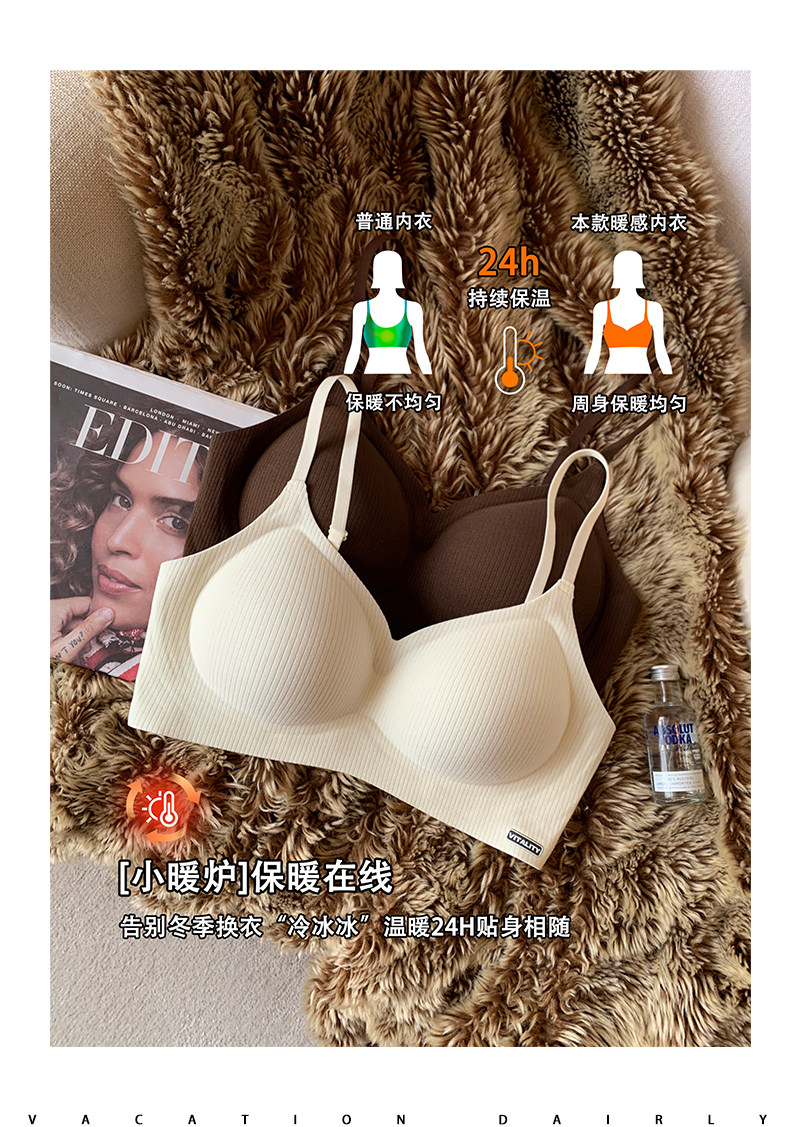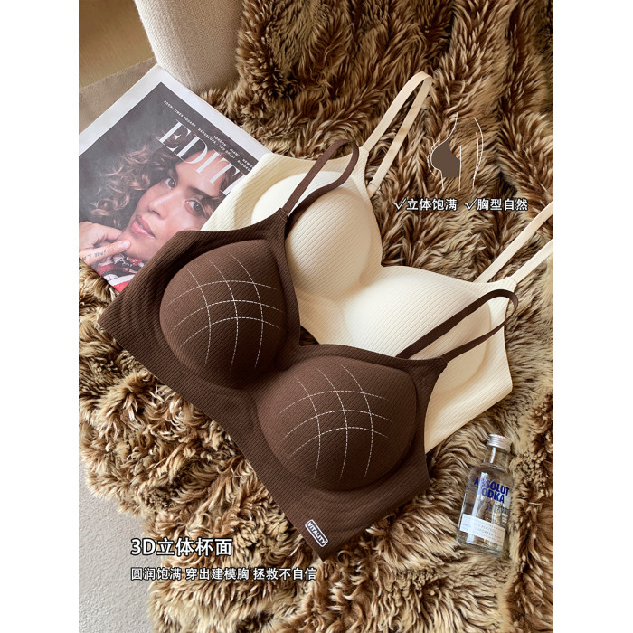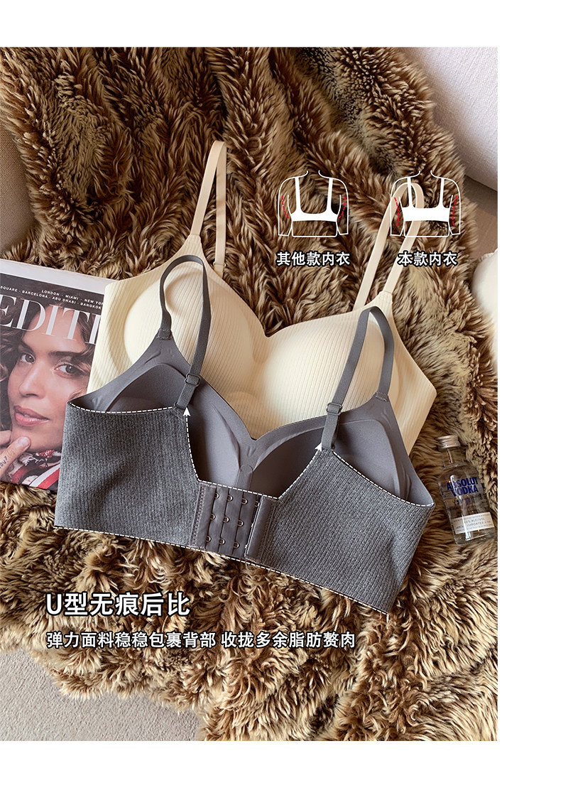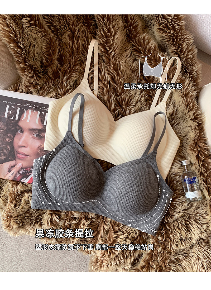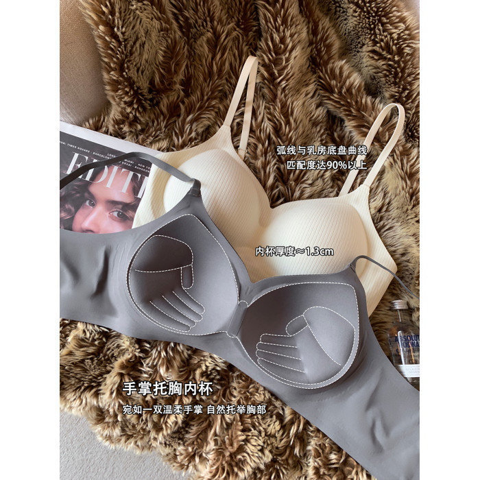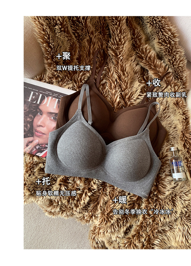 秋冬磨毛螺紋手掌杯內衣女小胸聚攏上托無鋼圈收副乳防下垂文胸罩