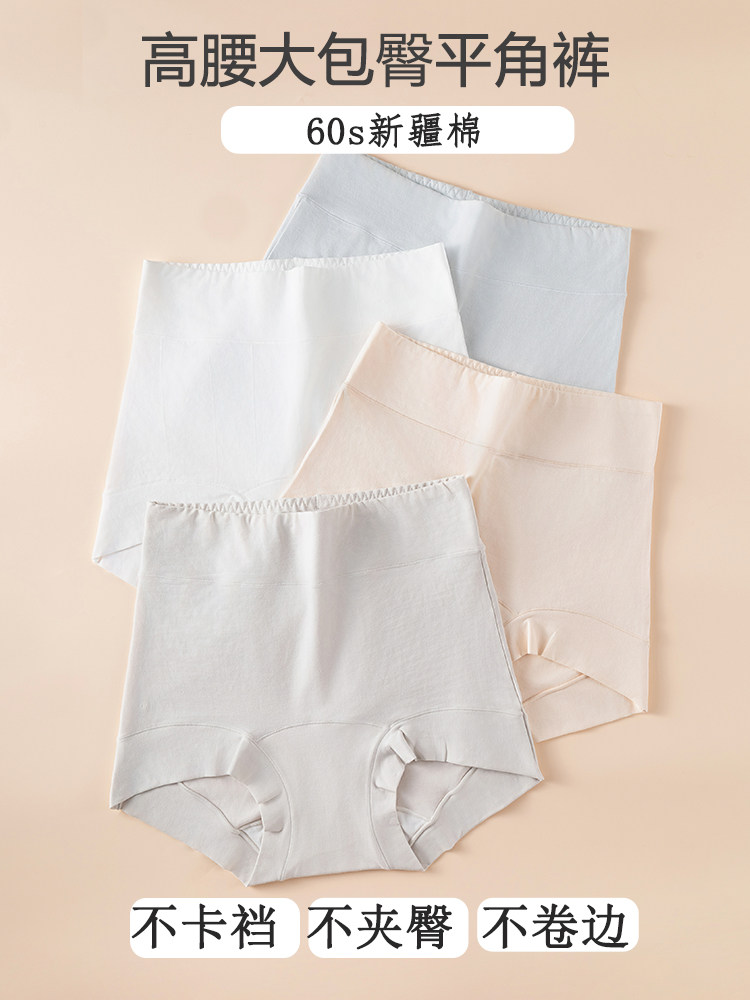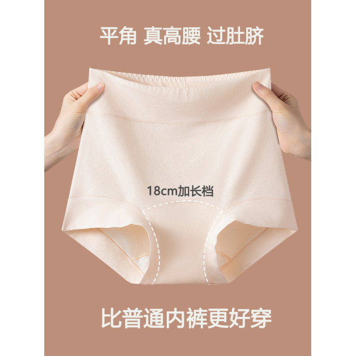 高腰加長襠女士平角內褲純棉加寬襠大碼收腹不夾臀不勒腿平腳短褲