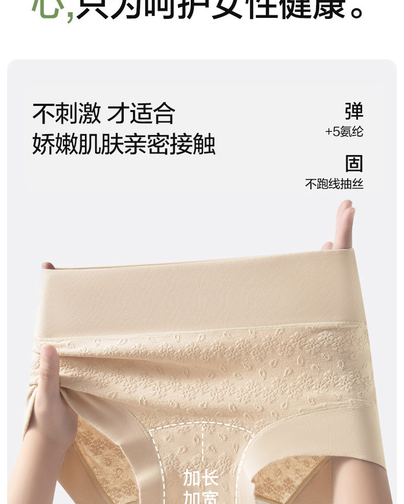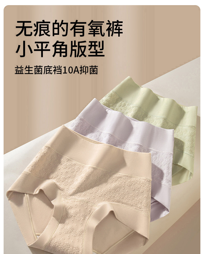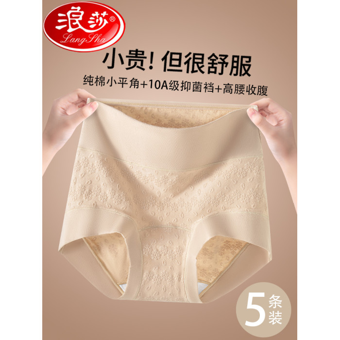 浪莎平角內褲女士純棉7a級抗菌2025新款高腰收腹100%全棉四角短褲