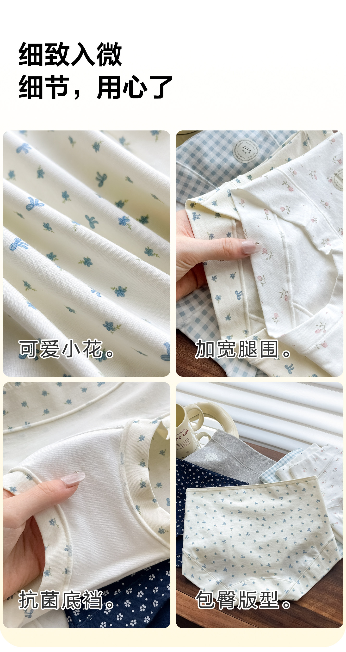 內褲女2025新款生女純棉女式四角10A抑菌加長襠碎花女士平角短褲