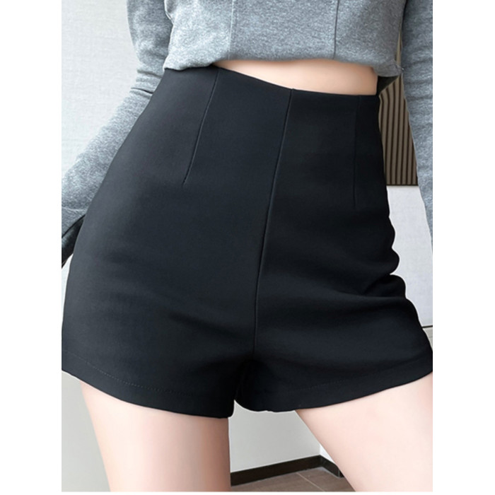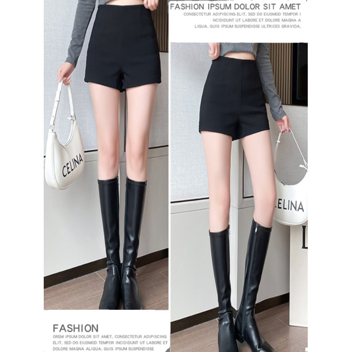 下衣失蹤辣妹黑色熱褲女冬外穿大碼高腰遮胯顯瘦胖mm彈力西裝短褲