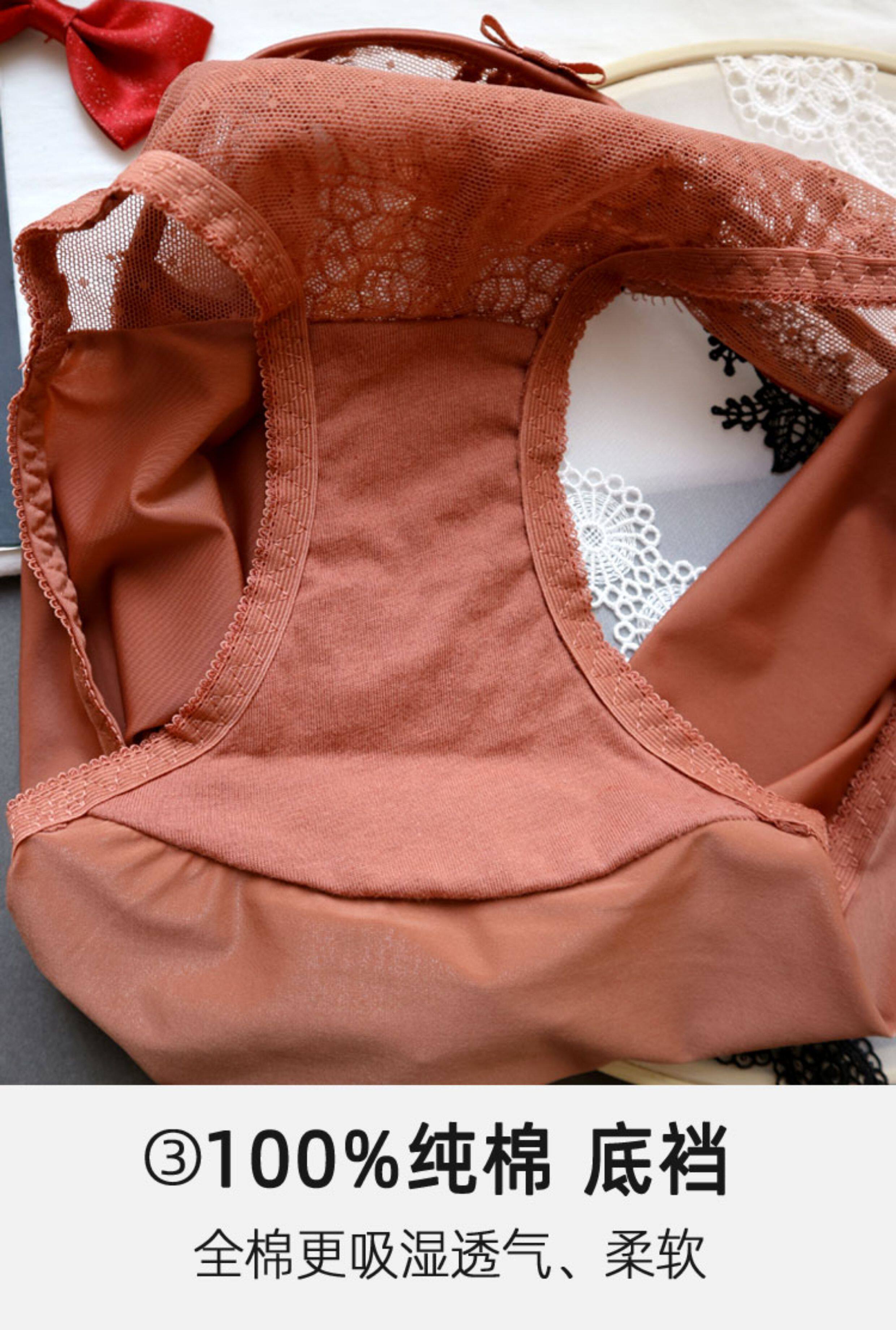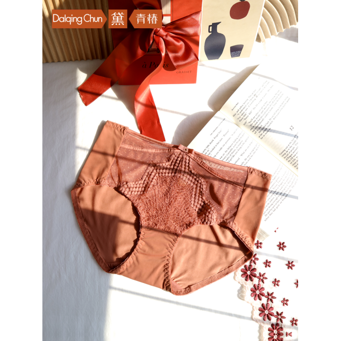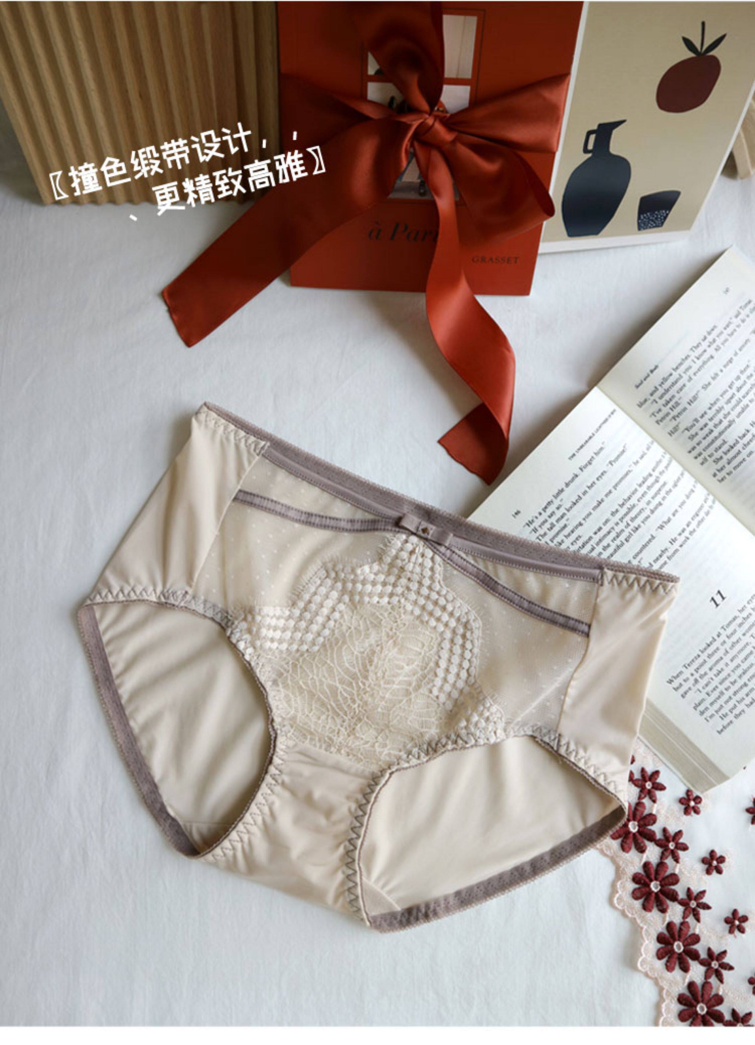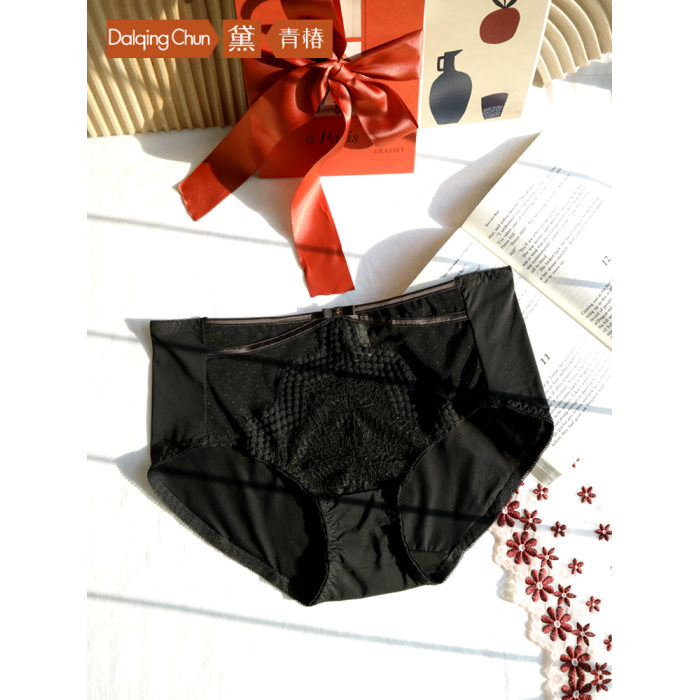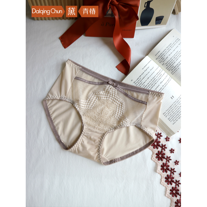 黛青椿輕量法式優雅蕾絲拼接牛奶絲內褲女士中腰提臀舒適四季褲衩