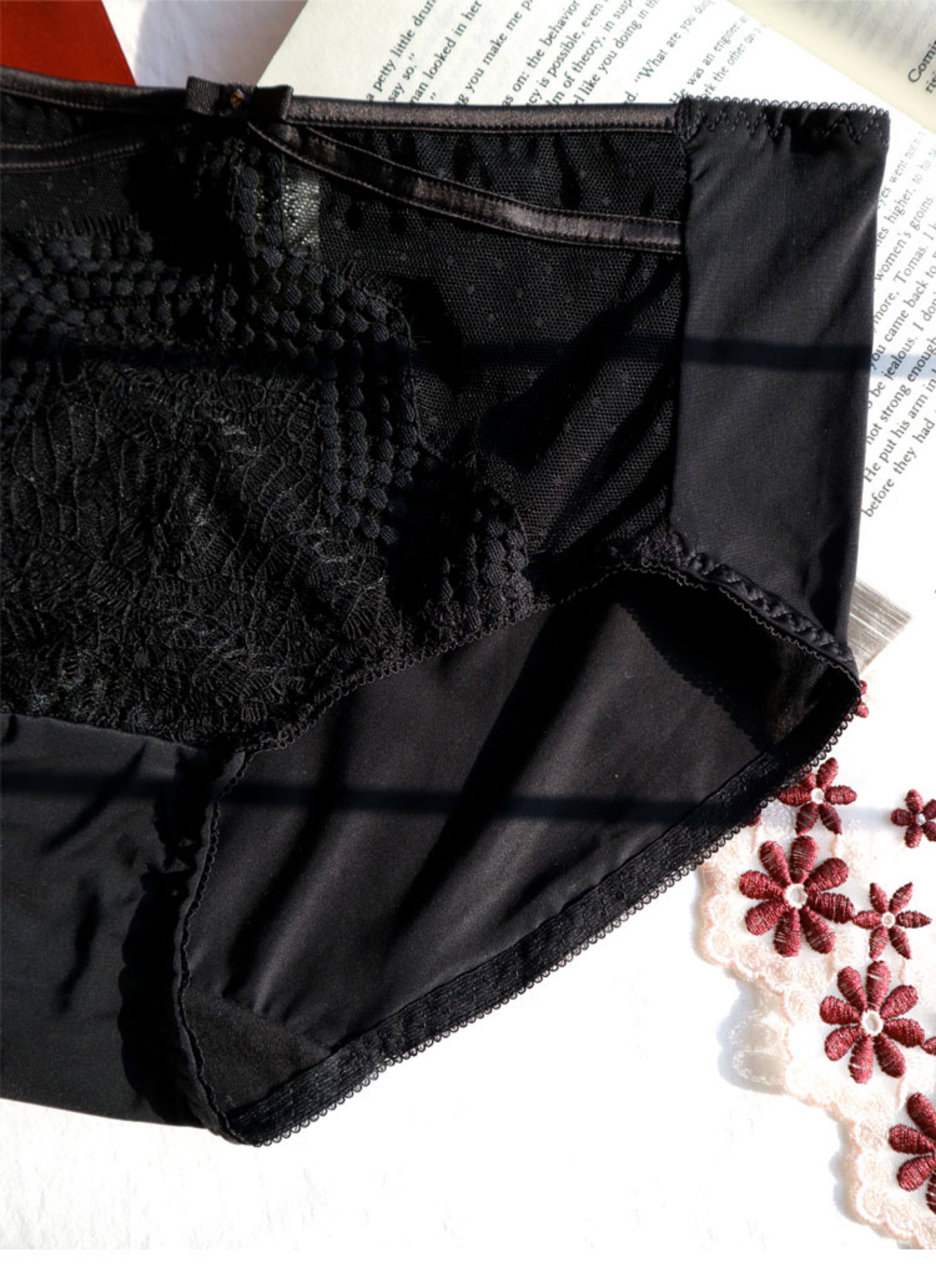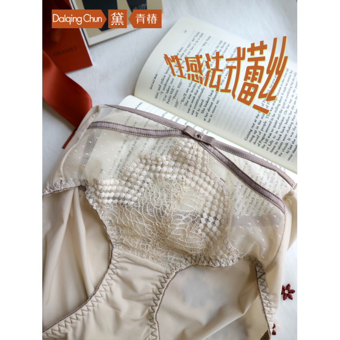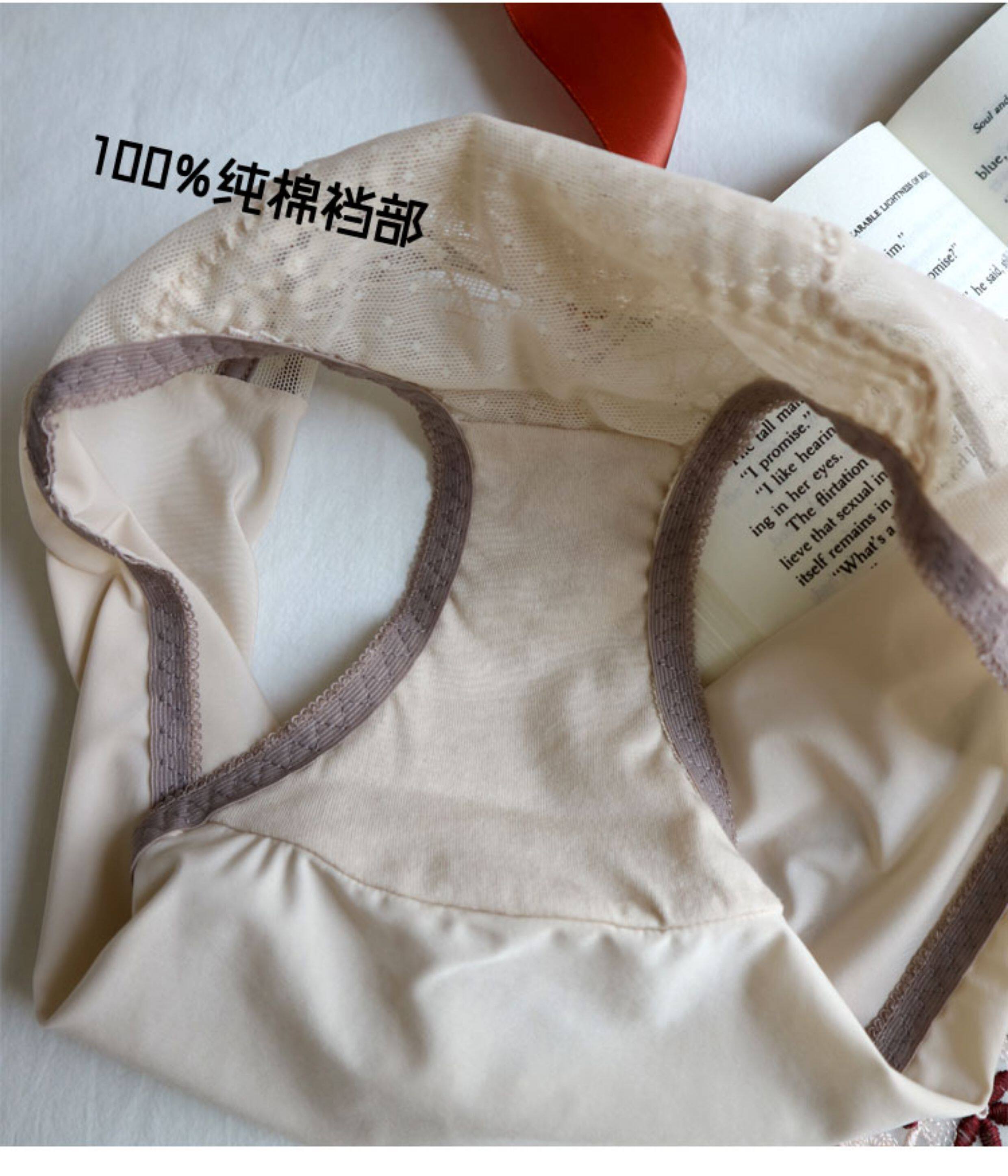黛青椿輕量法式優雅蕾絲拼接牛奶絲內褲女士中腰提臀舒適四季褲衩