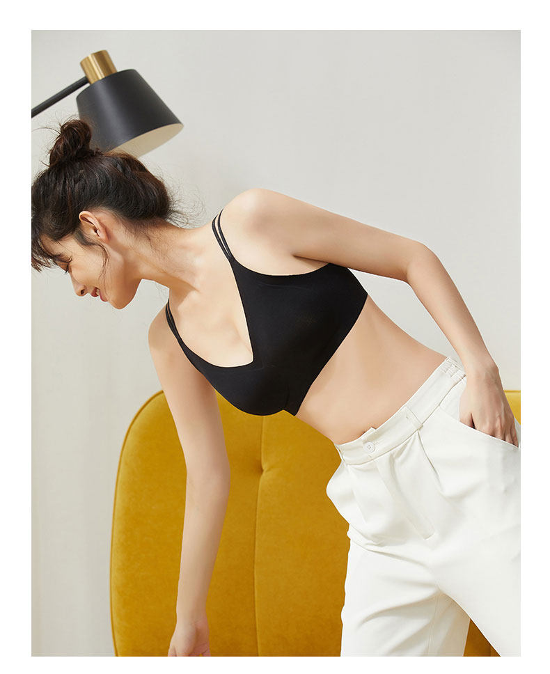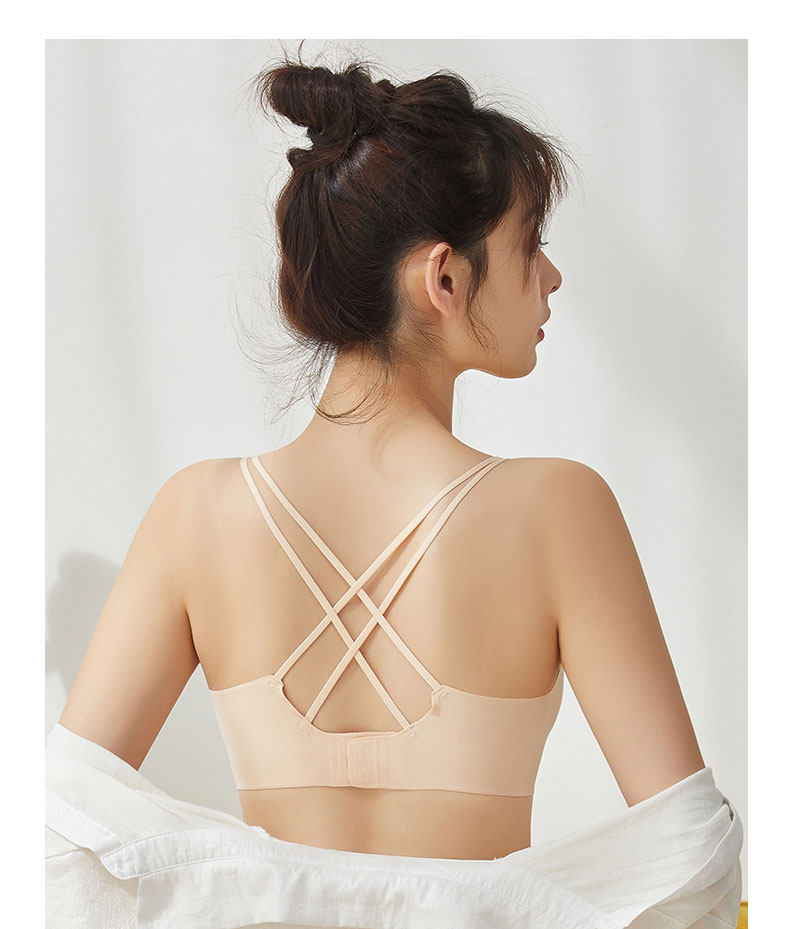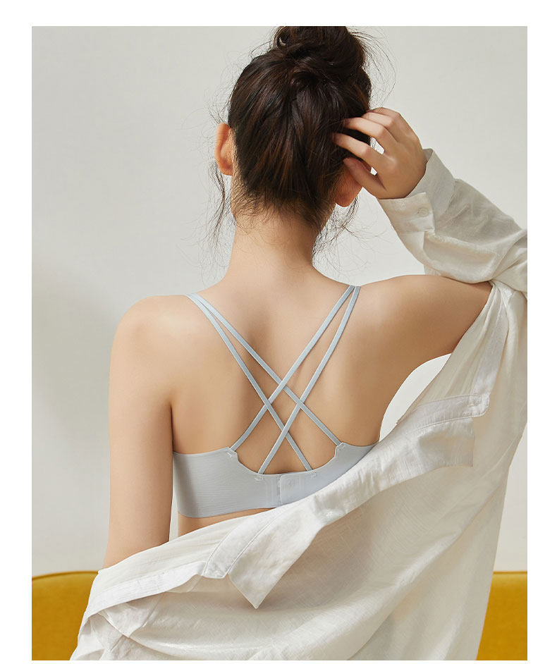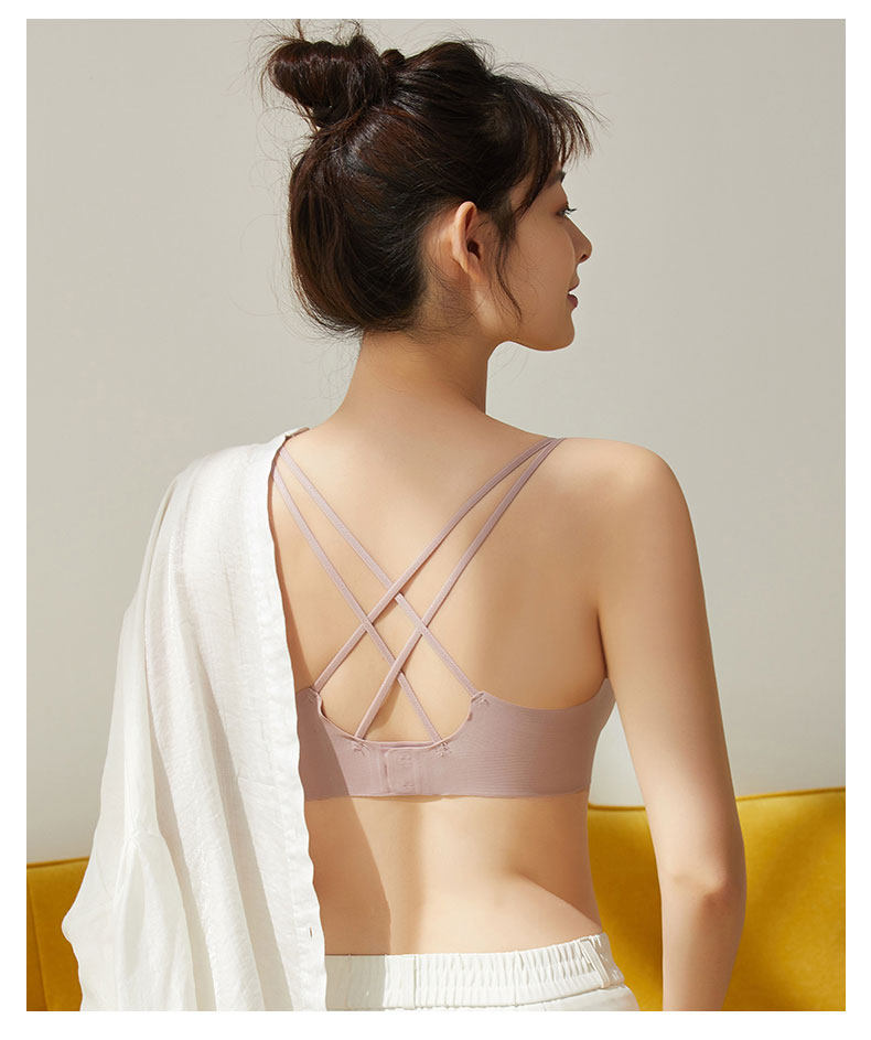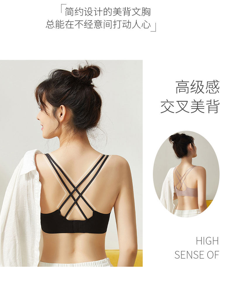 無痕美背內衣2024新款爆款女士薄款小胸聚攏背心一體黑色交叉文胸