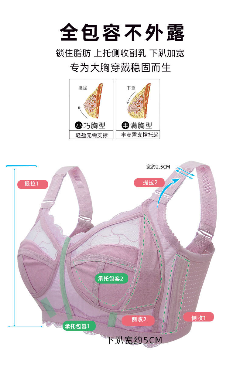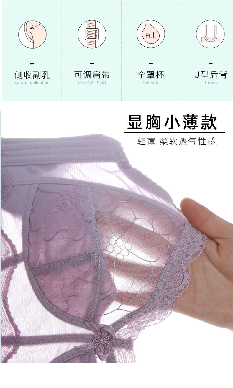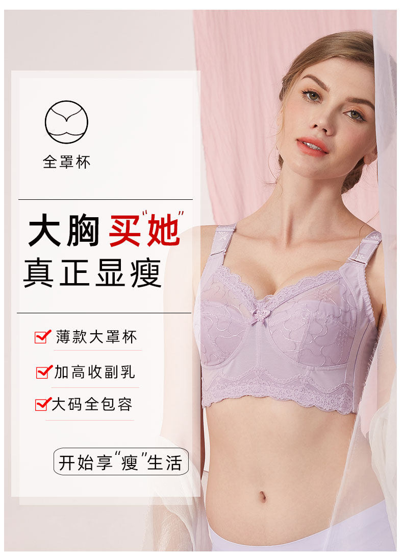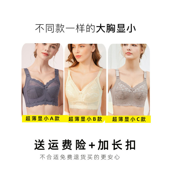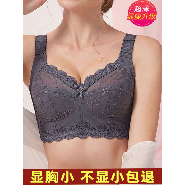無鋼圈大胸顯小文胸薄款全罩杯超薄顯胸小內衣女夏聚攏防下垂胸罩